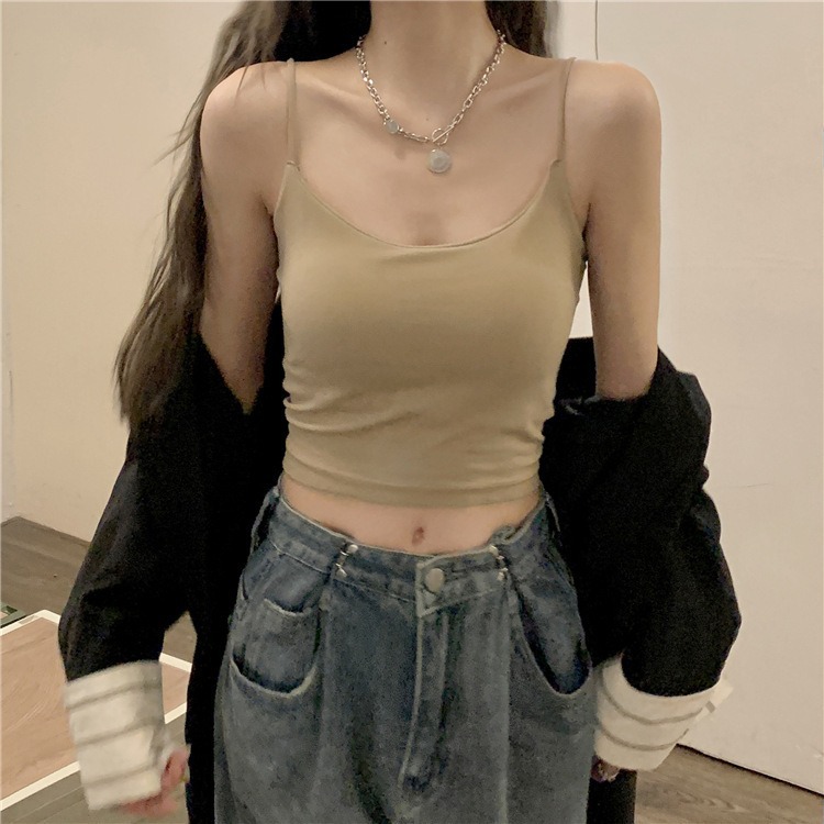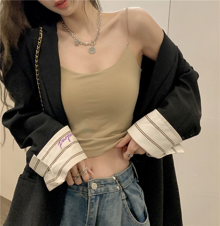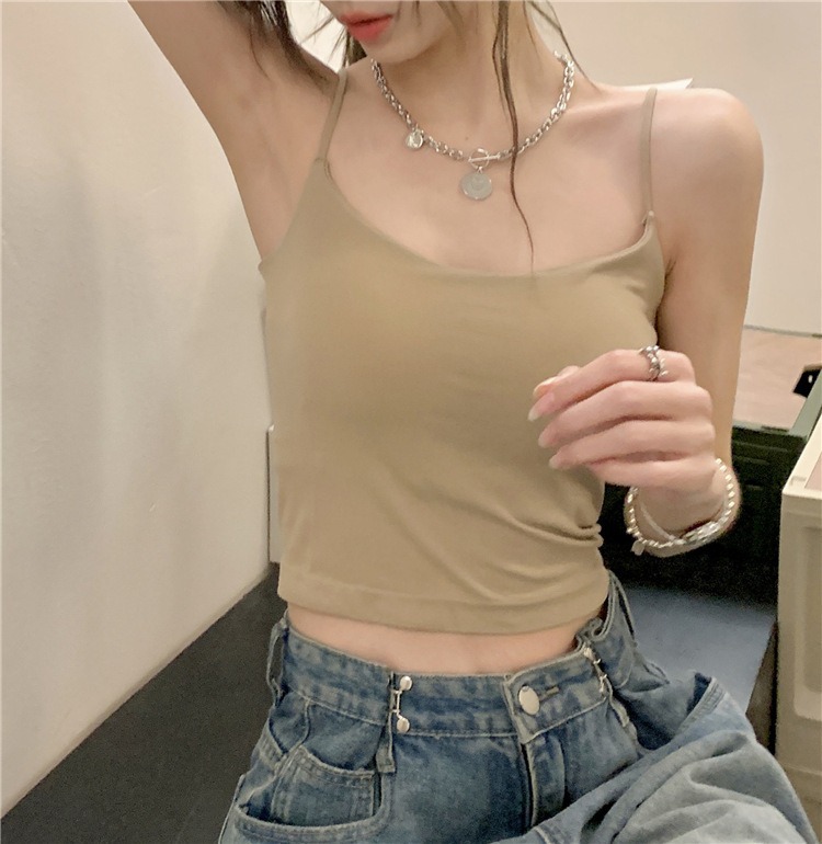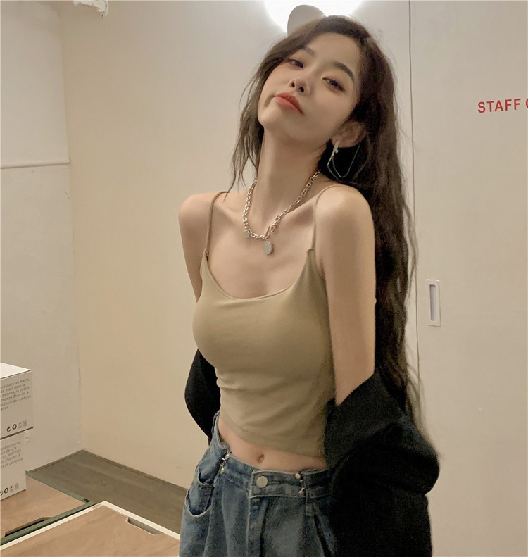 여름 외부 착용 민소매 슬링 아름다운 백 조끼 여자 내복 가슴 패드베이스 섹시한 튜브 탑 인터넷 핫 스파이스 걸 탑스토어 가기