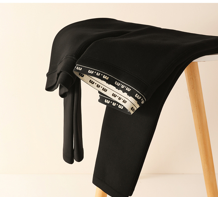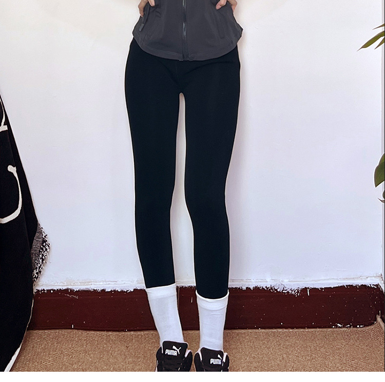 검은 슬림 레깅스 여성 겨울 기모 두꺼운 외부 따뜻한 유행 높은 허리 면 바지를 입고스토어 가기
