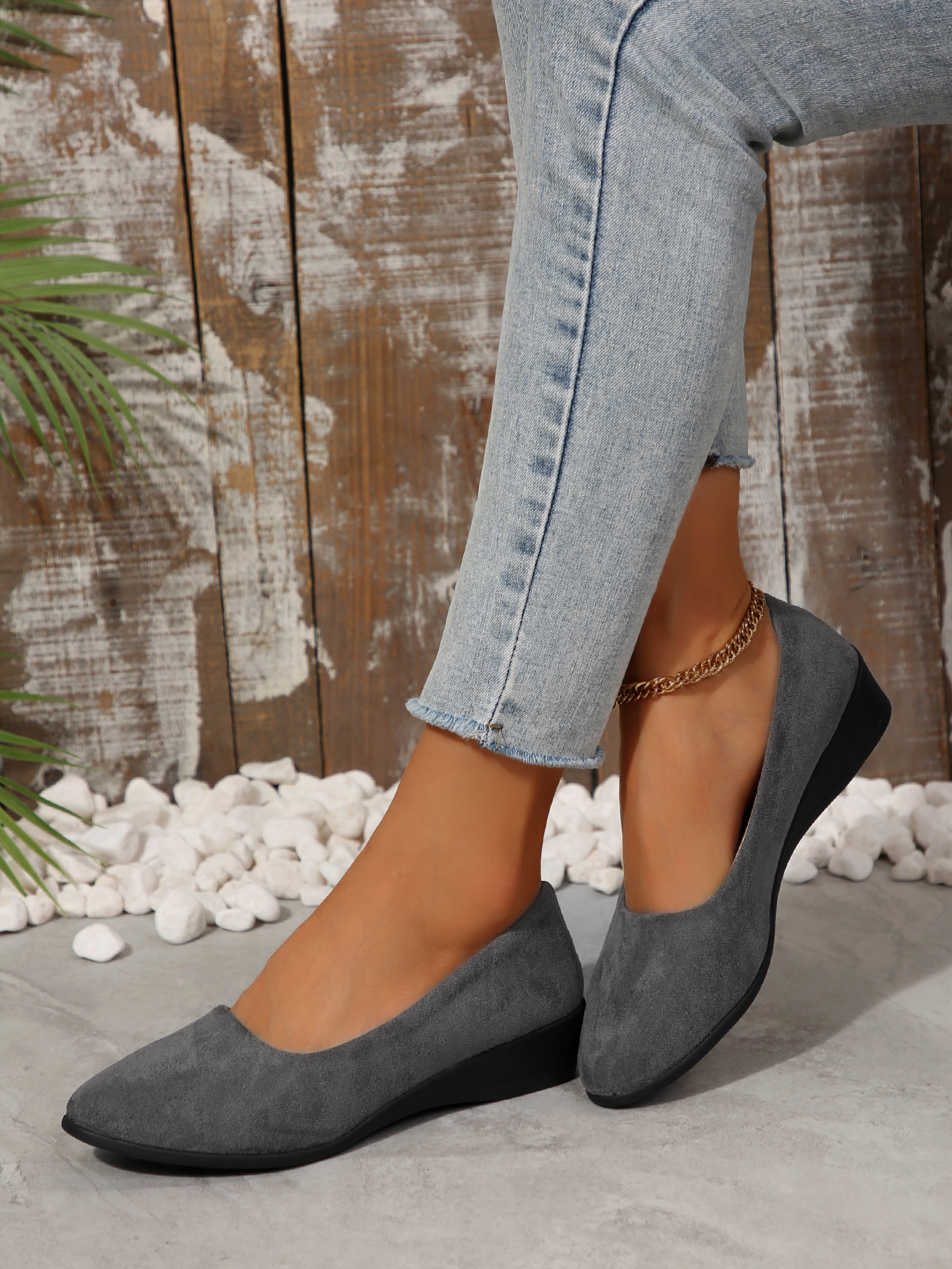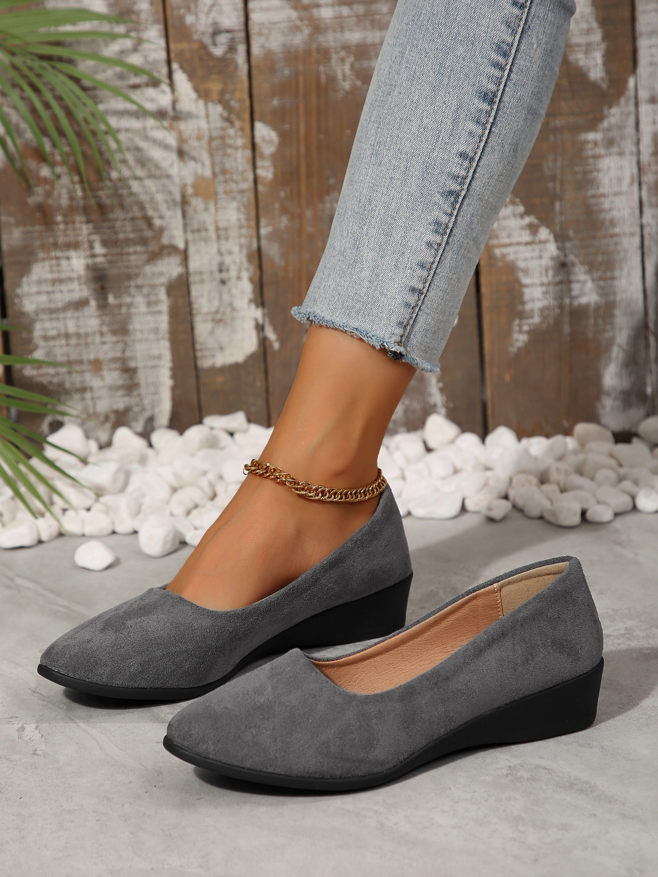 유럽과 미국의 대외 무역 플러스 사이즈 캐주얼 플랫 콩 신발 2024 가을 새로운 포인팅 소프트 하단 외부 착용 얕은 입 싱글 신발스토어 가기