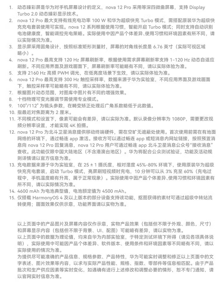 화웨이 nova12/nova12 Pro Netcom 5G 스마트 폰 전면 6 천만 사진 Kirin Hongmeng