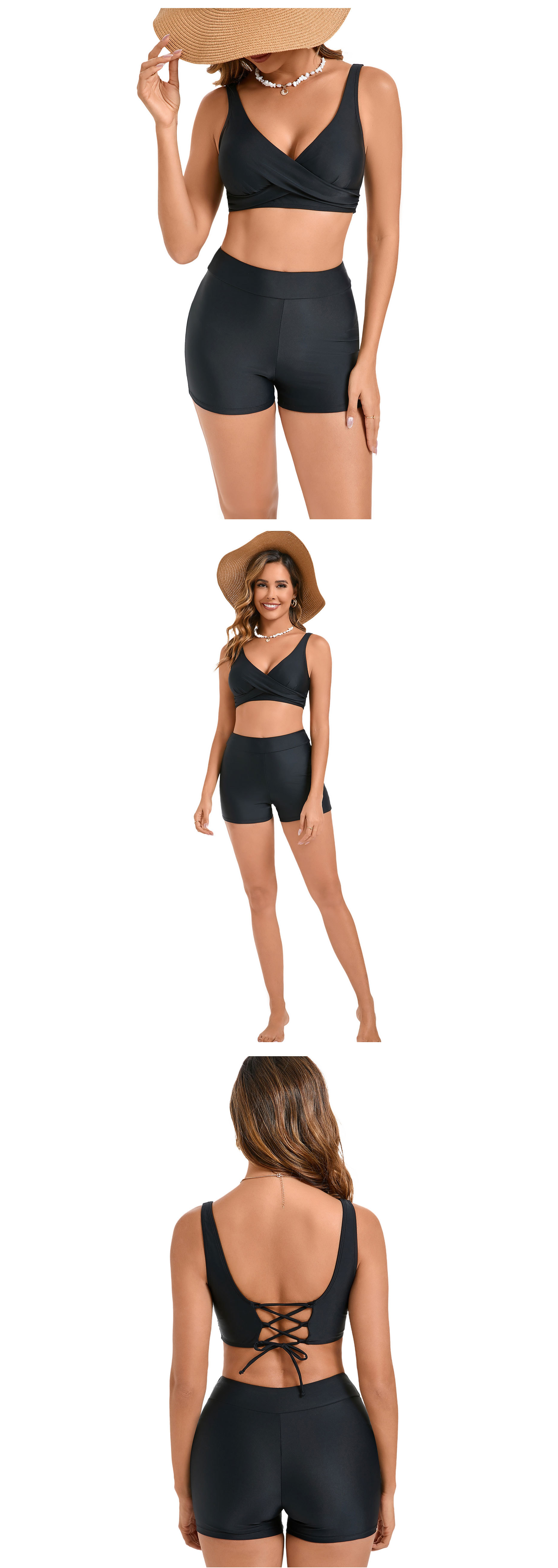 2025 새로운 백리스 테더 유럽과 미국의 대외 무역 수영복 섹시 분할 스크류 백 할로우 비키니 배꼽 높은 허리 수영복스토어 가기