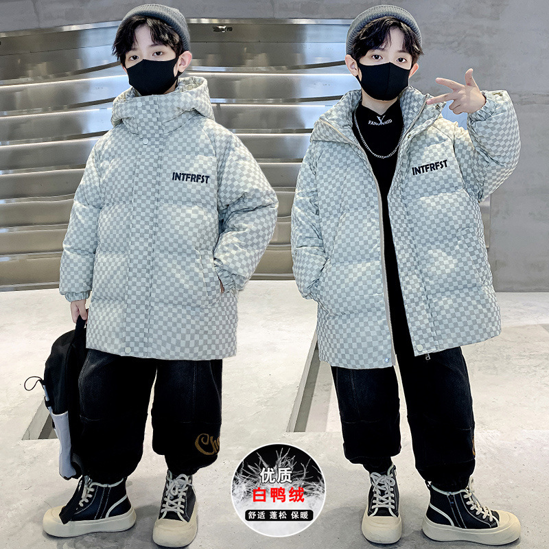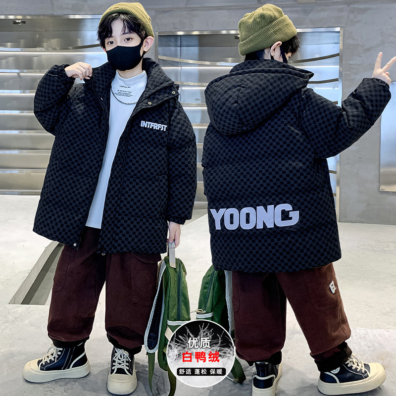 아동복 소년의 겨울 다운 재킷 2024 새로운 스타일 소년 겨울 두꺼운 50 화이트 덕 다운 재킷 트렌디스토어 가기