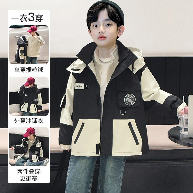 소년 재킷 투피스 가을, 겨울 어린이 면화 두꺼운 벨벳 탈착식 재킷 3-in-1 2025 새로운 트렌드스토어 가기