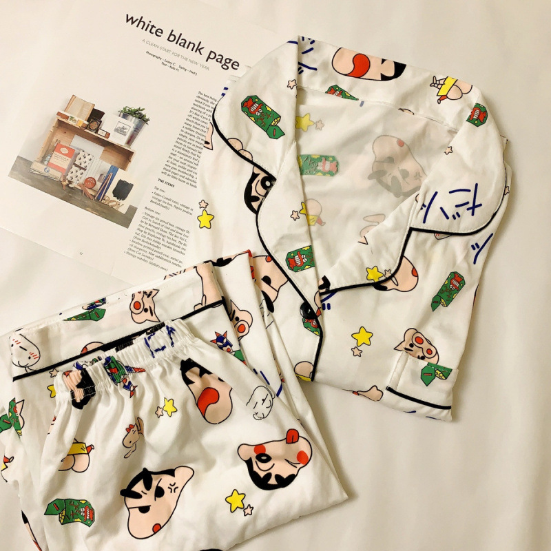 가을과 겨울 새로운 어린이 만화 크레용 작은 새 소년 긴팔 잠옷 여성의 Baozhong 집 옷 큰 어린이 잠옷 세트스토어 가기
