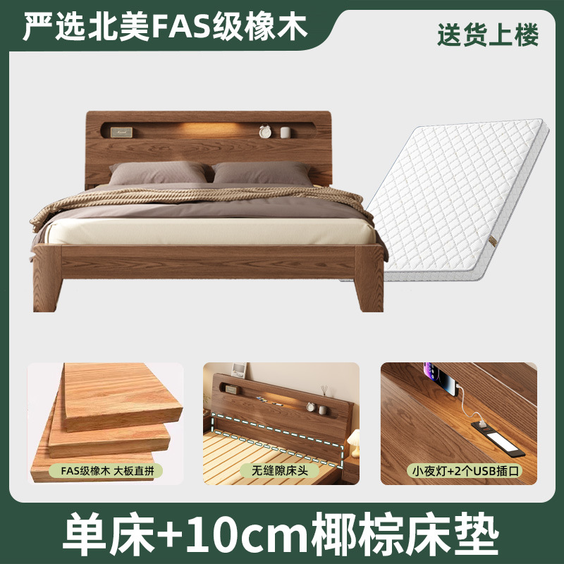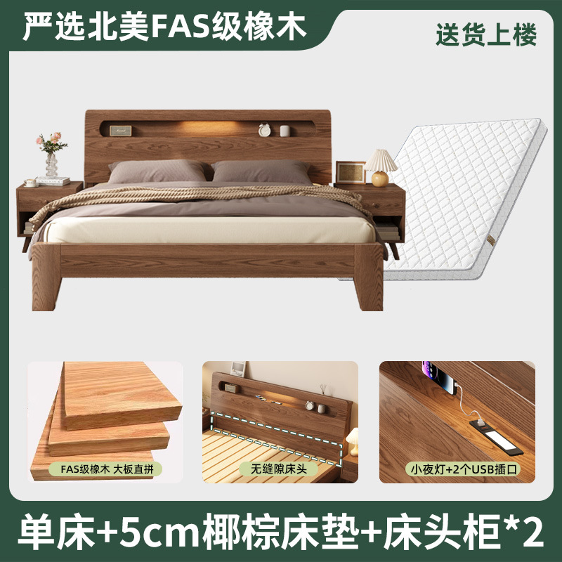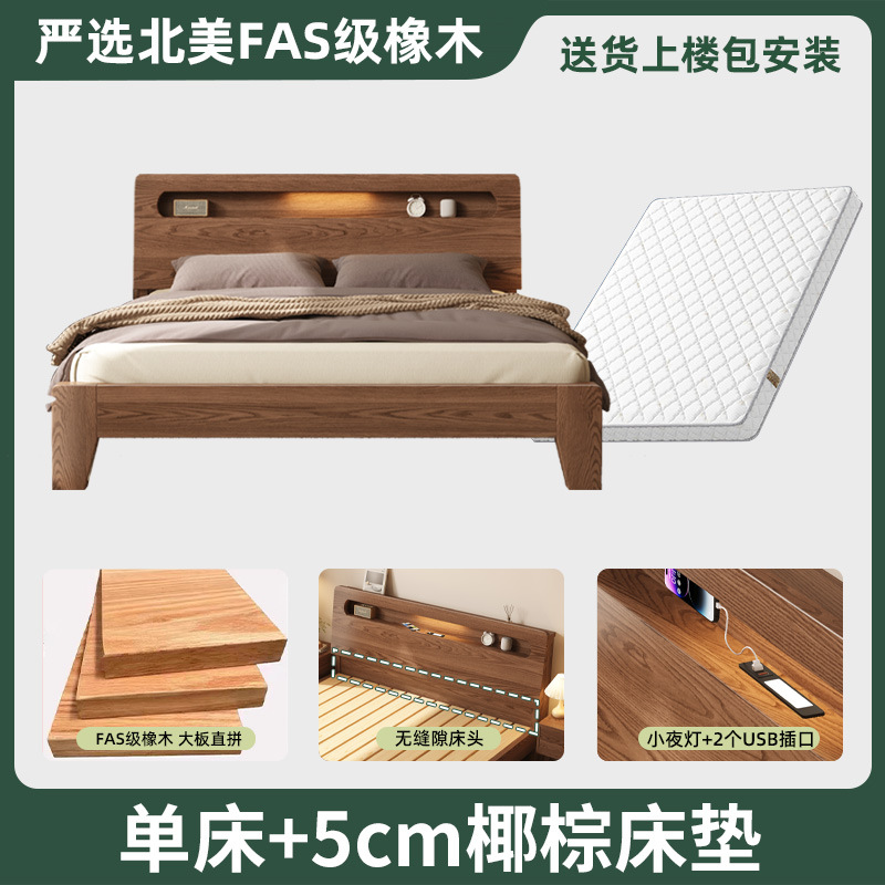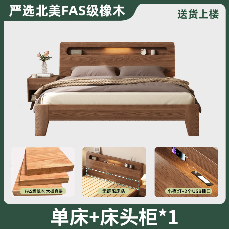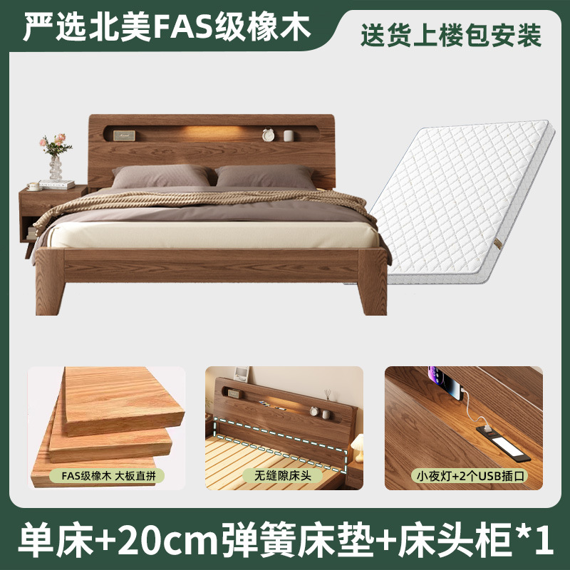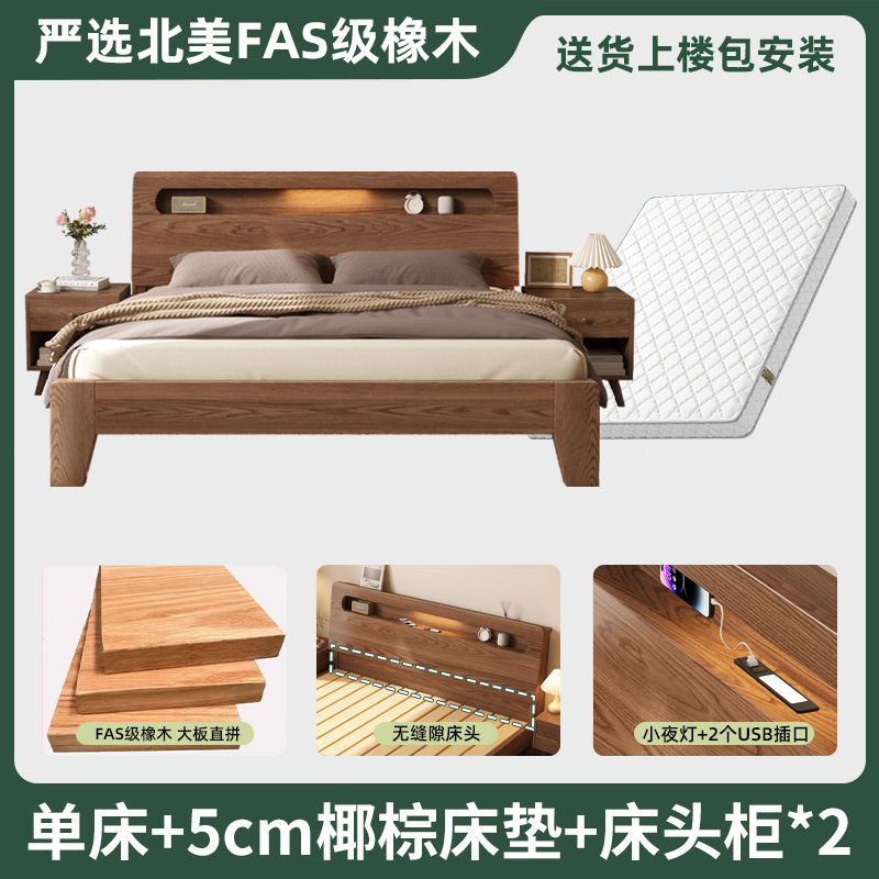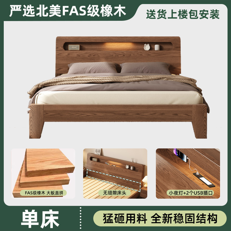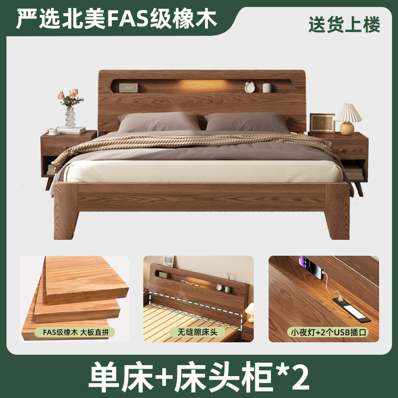 모든 단단한 나무 침대 현대 간단한 마스터 침실 더블 침대 1.5 m 홈 침대 오크 렌탈 룸 1.2 m 싱글 침대 프레임