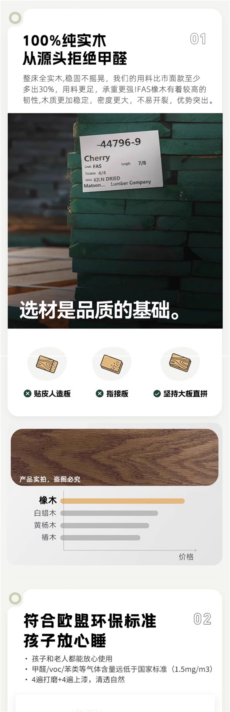 • 월넛오크 침대 + 5cm 코코넛팜 매트리스 + 침대협탁*2 [위층 패키지]