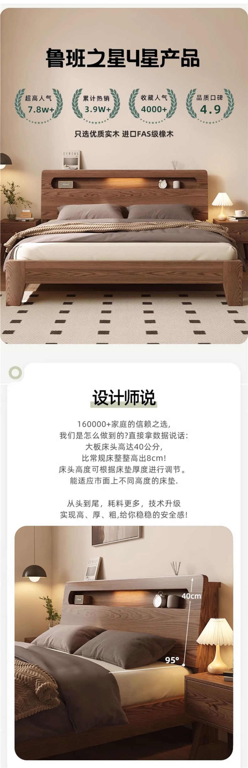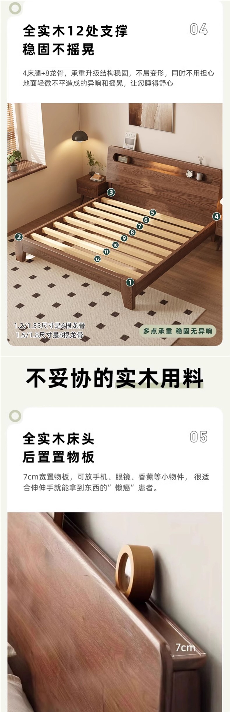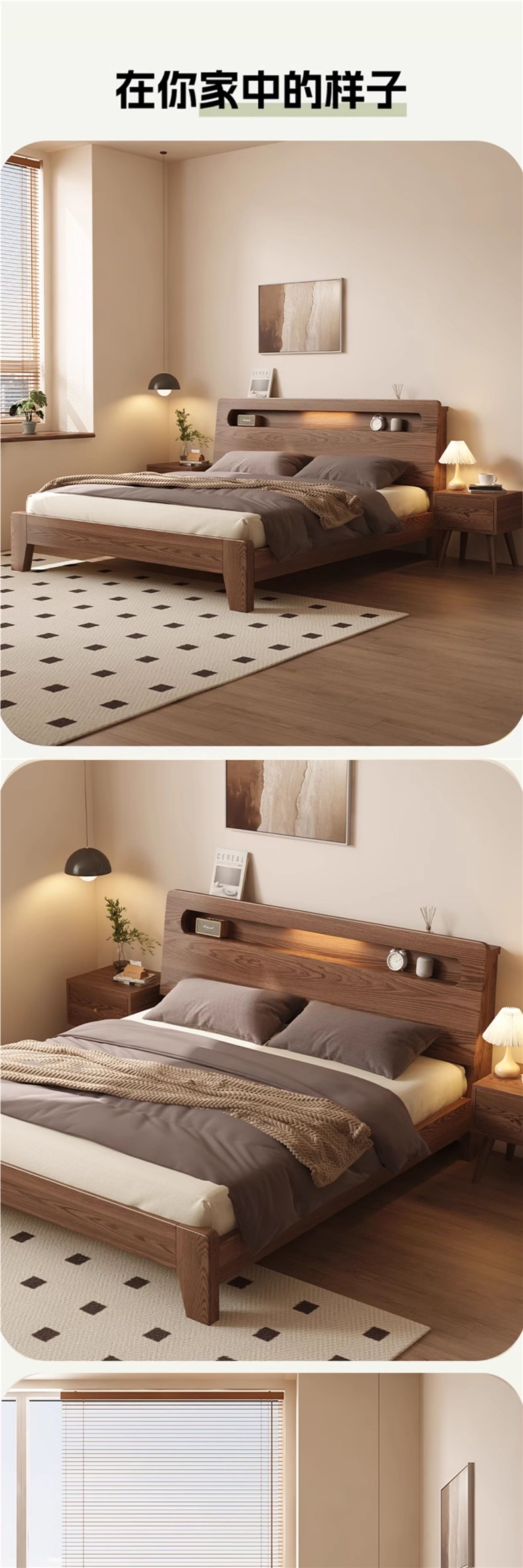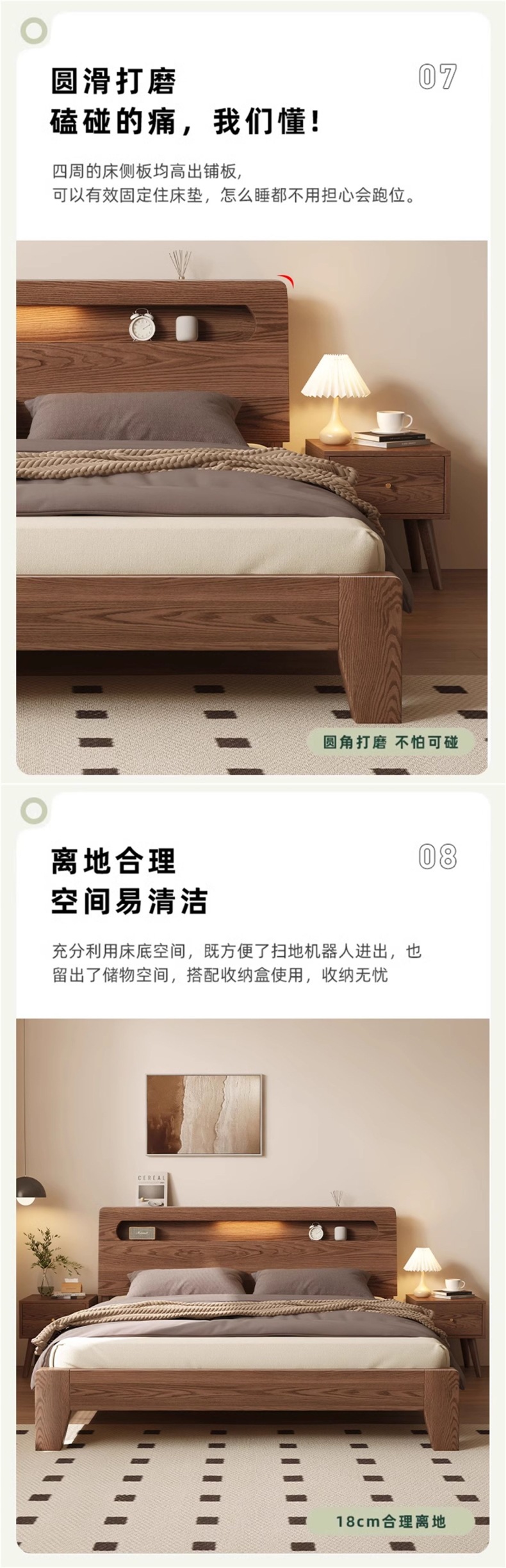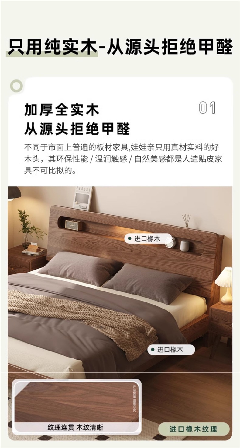 • 월넛오크 침대 + 20cm 스프링 매트리스 + 침대협탁 * 1 [위층 패키지]