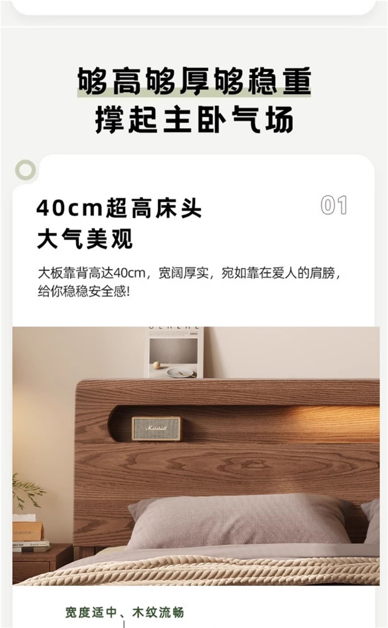 • 월넛오크 침대 + 20cm 스프링 매트리스 + 침대협탁 * 1 [위층 패키지 + 설치]