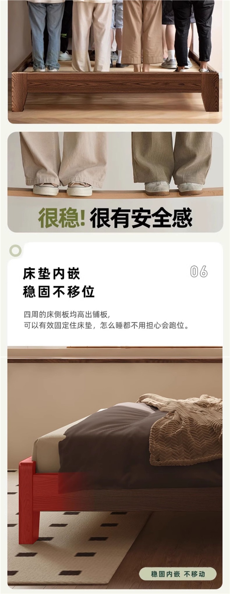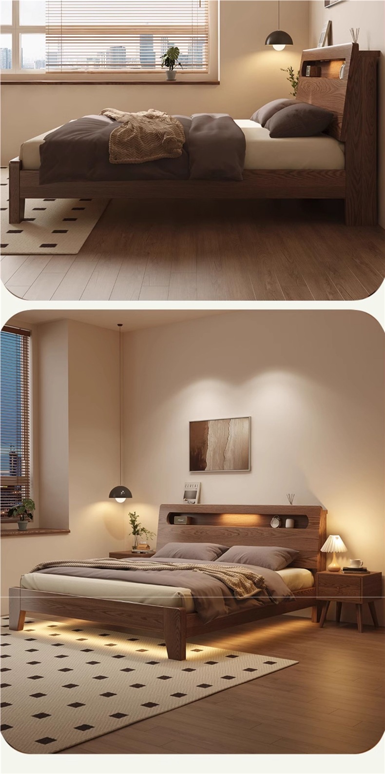 • 월넛오크 침대 + 20cm 스프링 매트리스 + 침대협탁*2 [위층 패키지]
