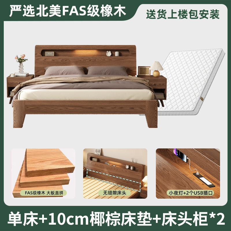 모든 단단한 나무 침대 현대 간단한 마스터 침실 더블 침대 1.5 m 홈 침대 오크 렌탈 룸 1.2 m 싱글 침대 프레임스토어 가기