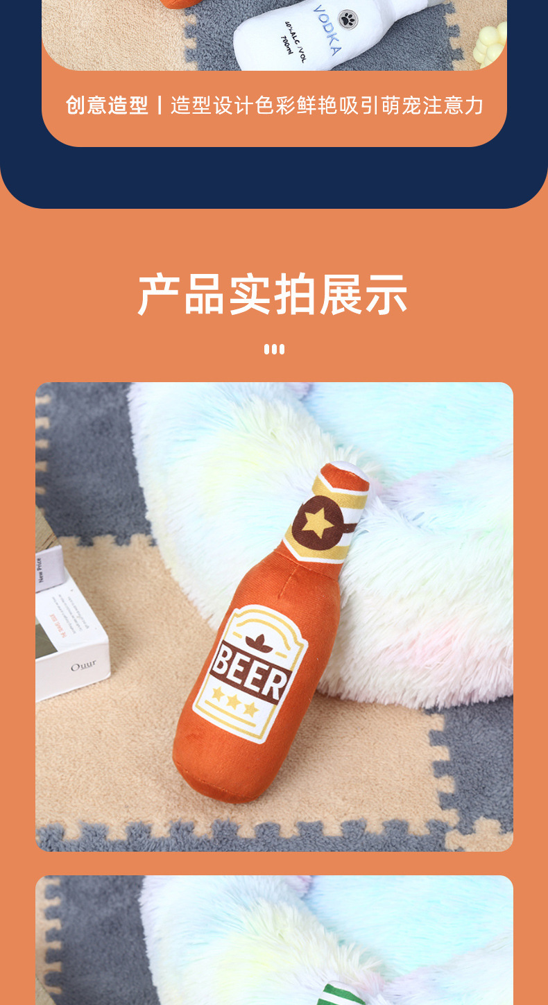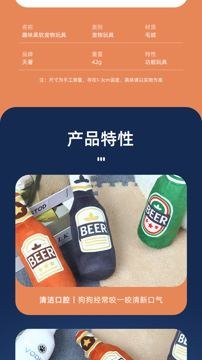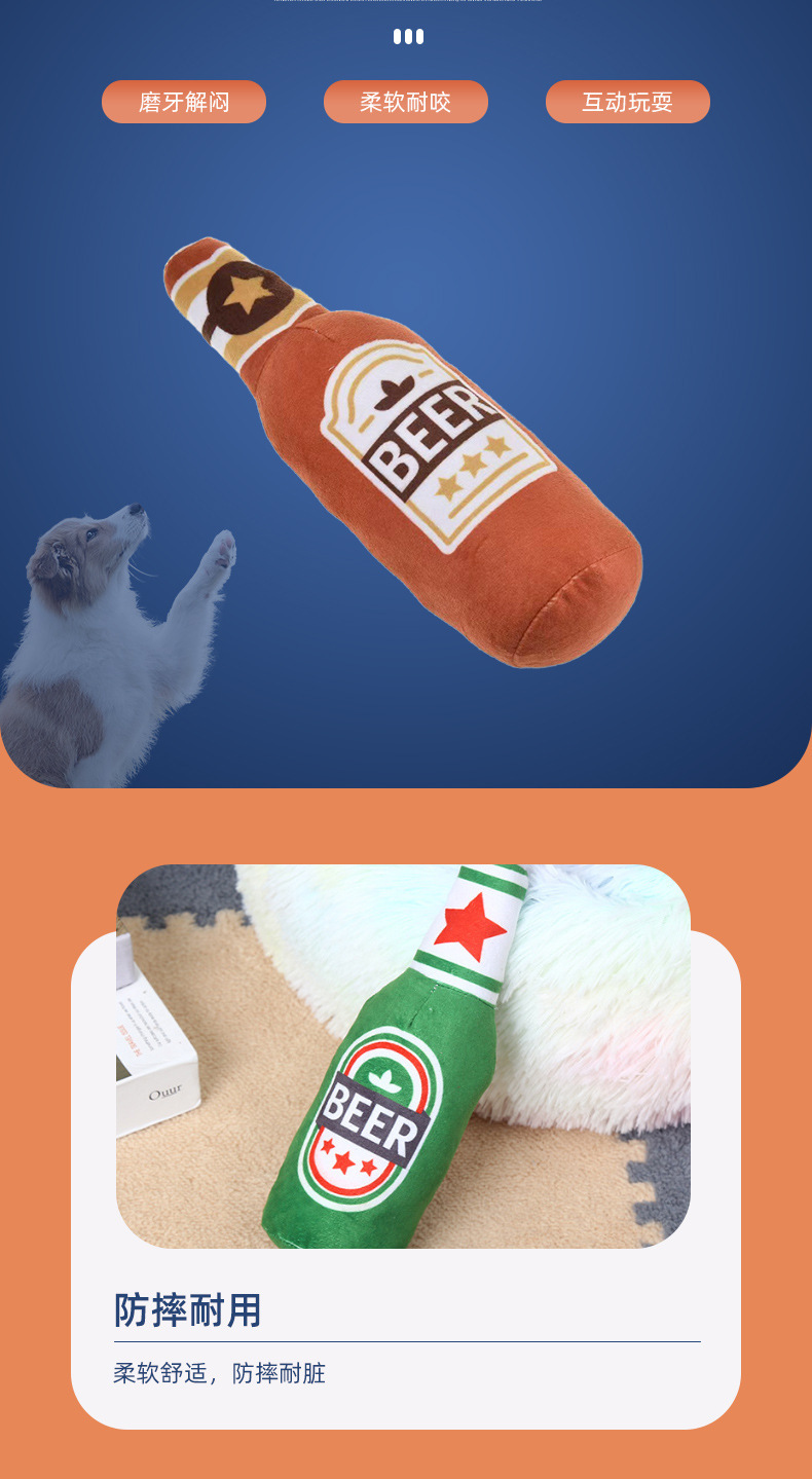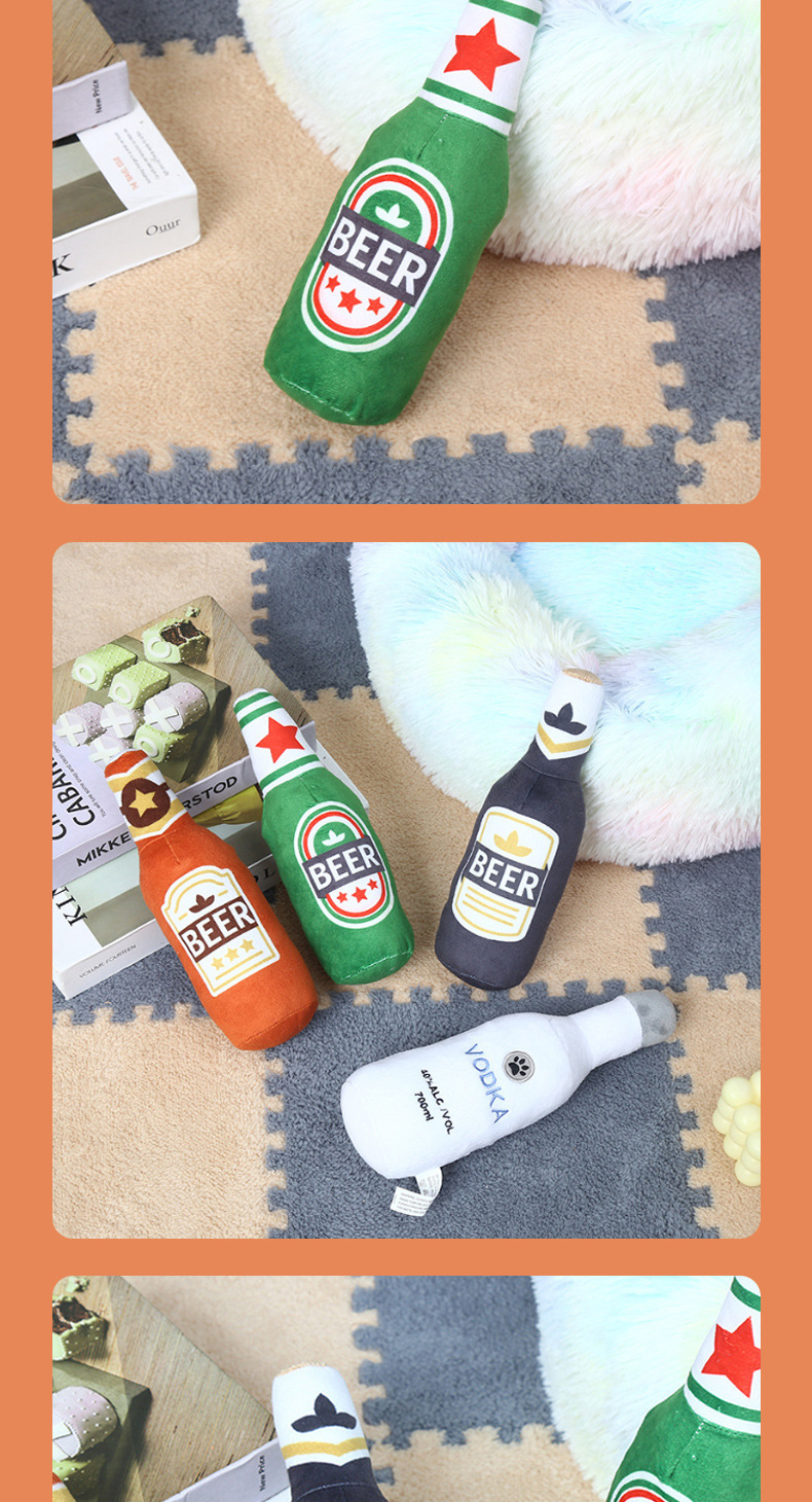 애완 동물 봉제 보컬 장난감 위스키 병 맥주 짜는 종이 보컬 개 장난감 물린 방지