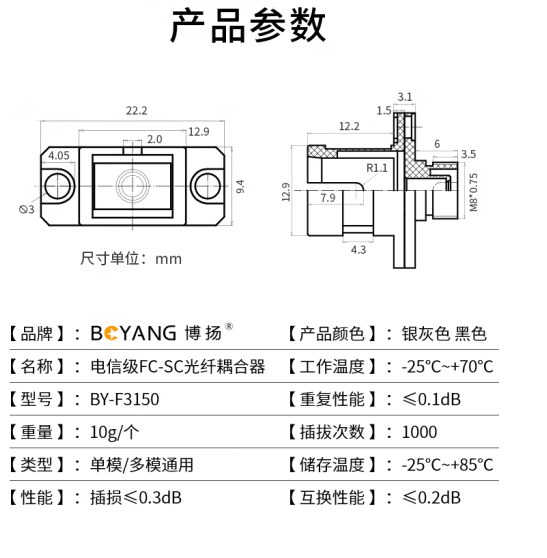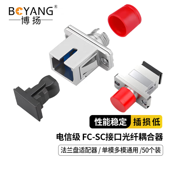 博扬(BOYANG)电信级FC-SC耦合器 FC-SC接口 光纤法兰盘适配器光纤延长转接头(50个装)BY-F3150*1 合格证*1
