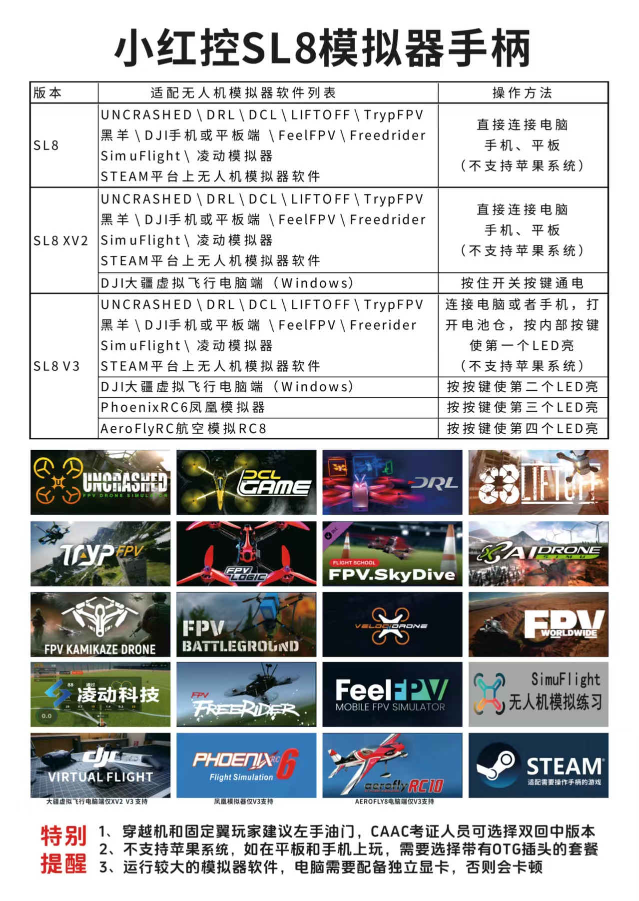 • SL8 X V2 [데이터 케이블 없음]는 DJI 가상 비행을 지원합니다.
