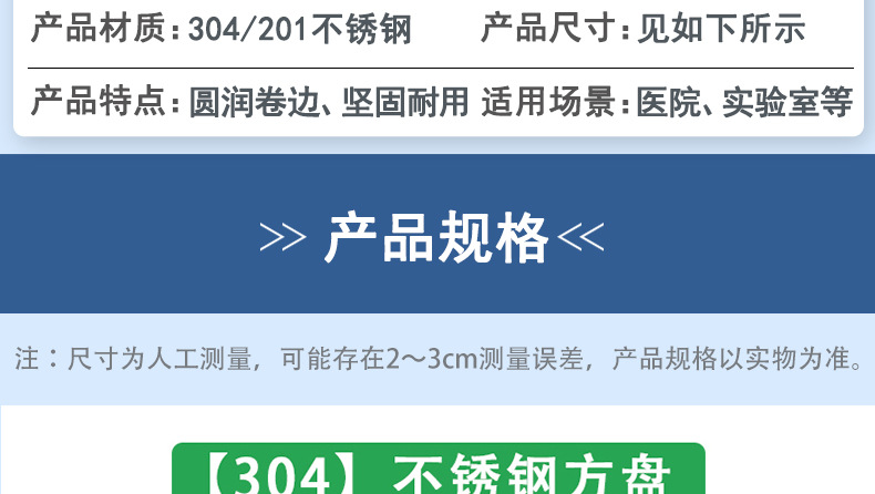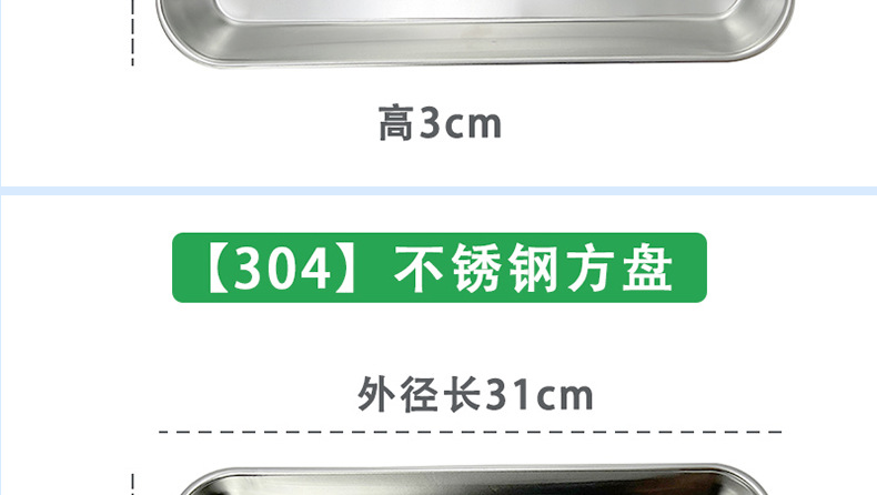 304 스테인레스 스틸 사각 플레이트가 두껍게 큰 식기 사각 플레이트 안티-iodophor 소독 플레이트 약 변경 플레이트 수술 용 악기 트레이