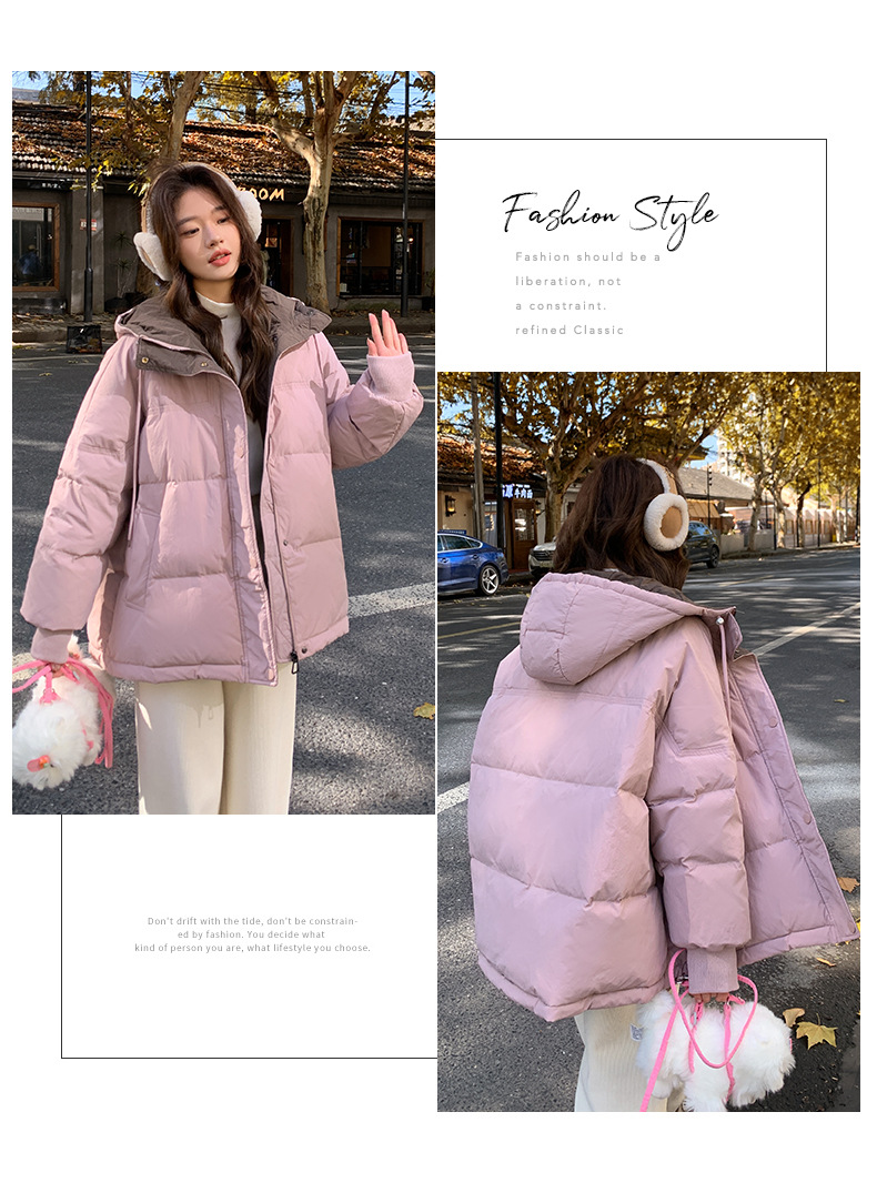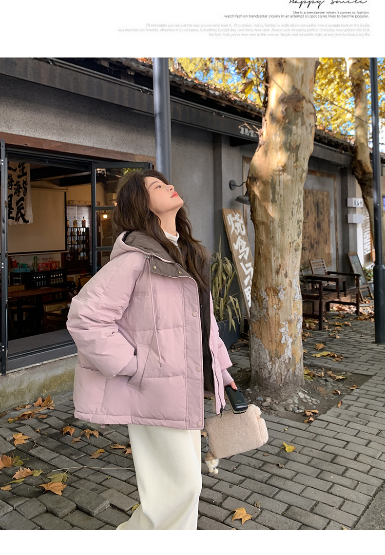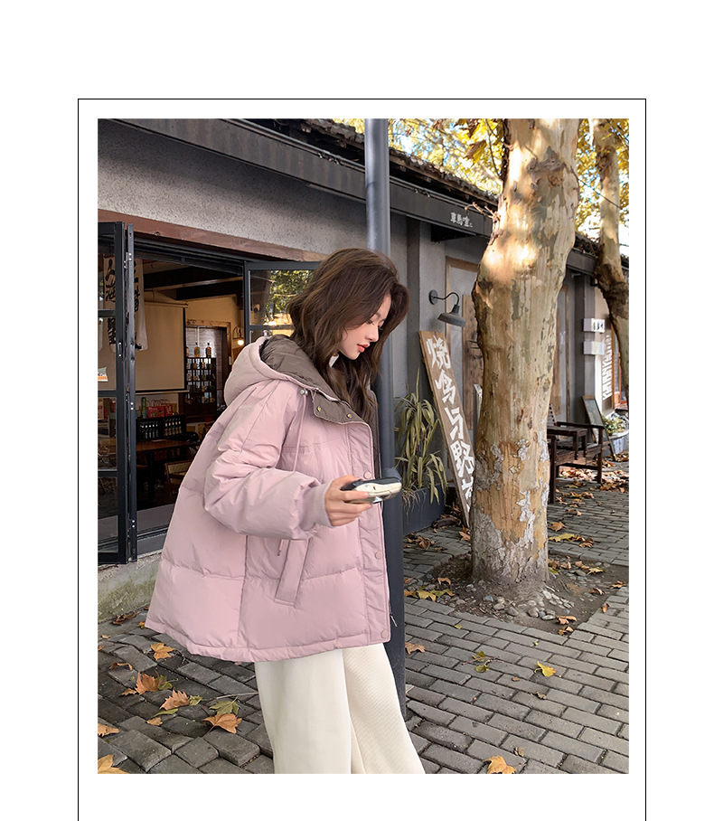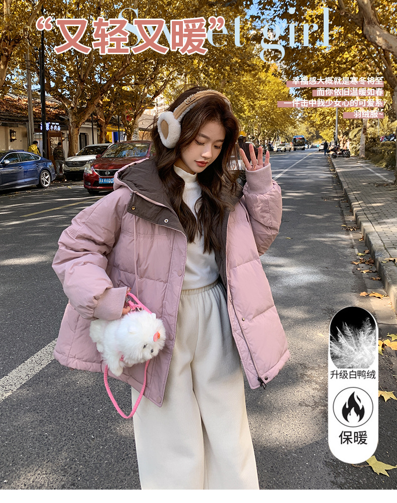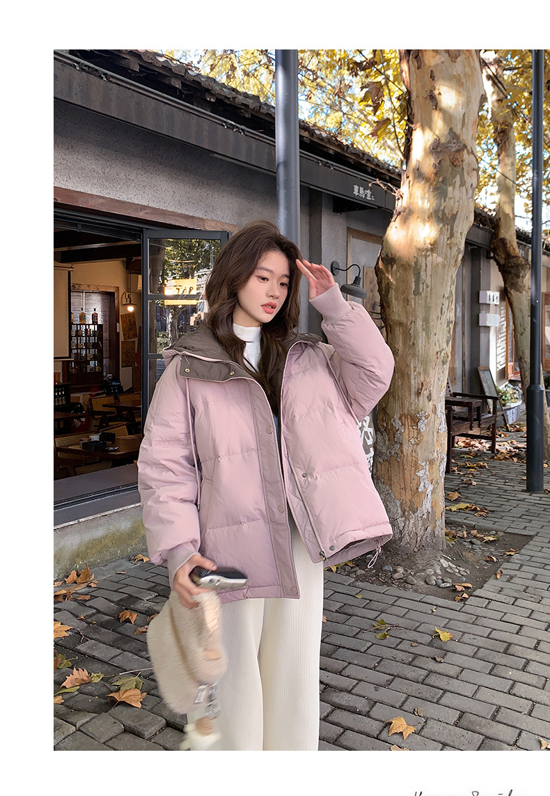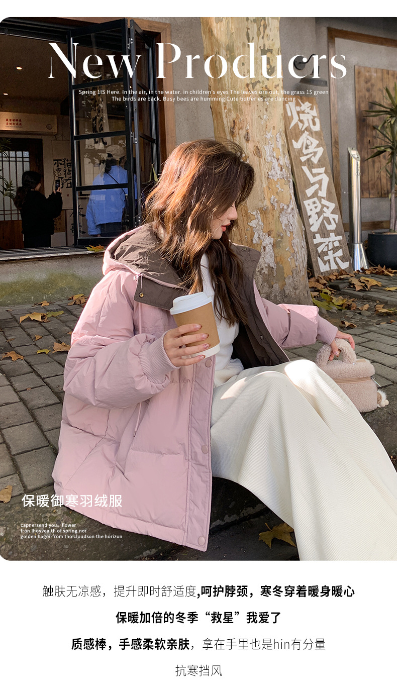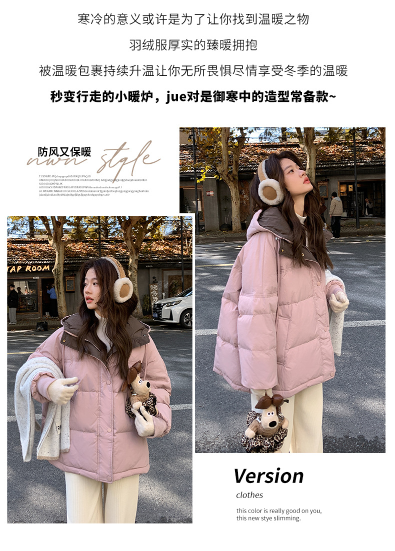 2C177-915-P245-K318 새로운 겨울 소녀 작은 대조 컬러 후드 한국 느슨한 두꺼운