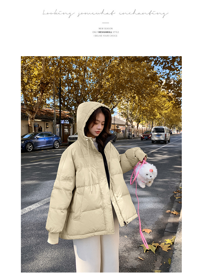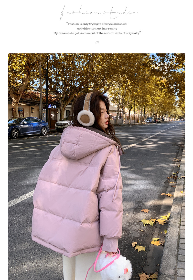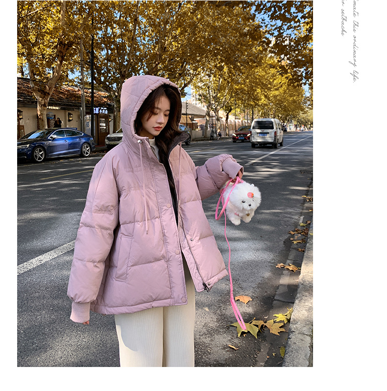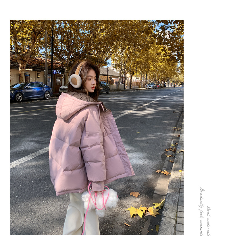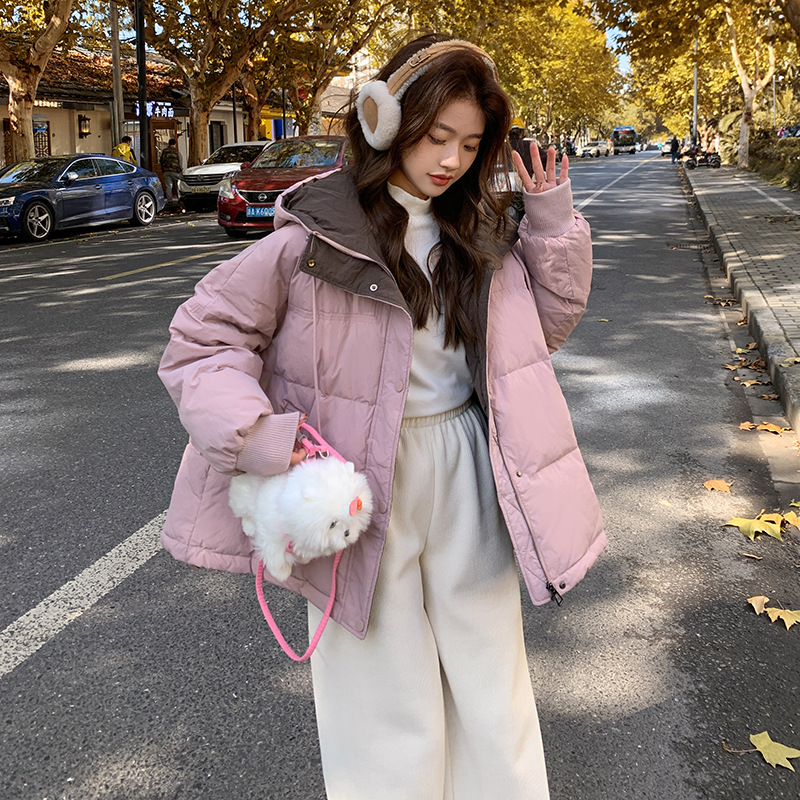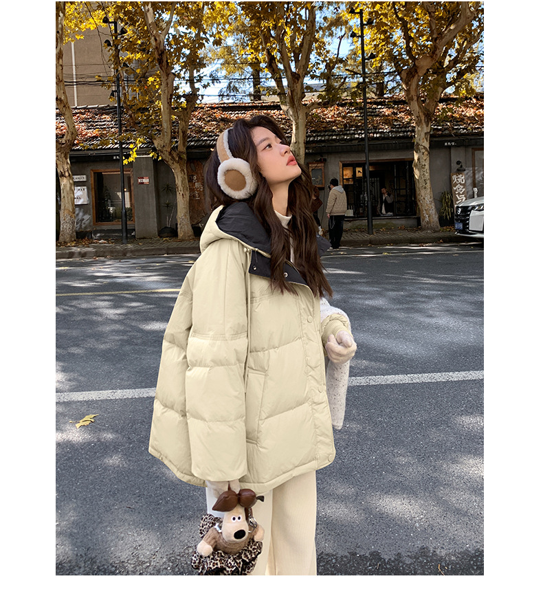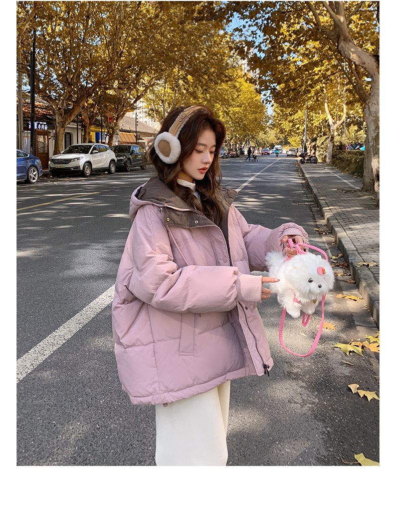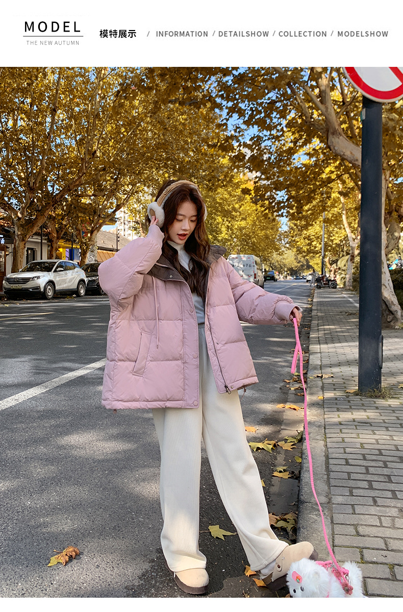 2C177-915-P245-K318 새로운 겨울 소녀 작은 대조 컬러 후드 한국 느슨한 두꺼운