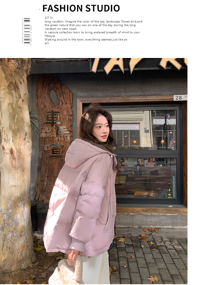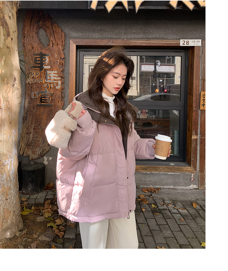 2C177-915-P245-K318 새로운 겨울 소녀 작은 대조 컬러 후드 한국 느슨한 두꺼운스토어 가기