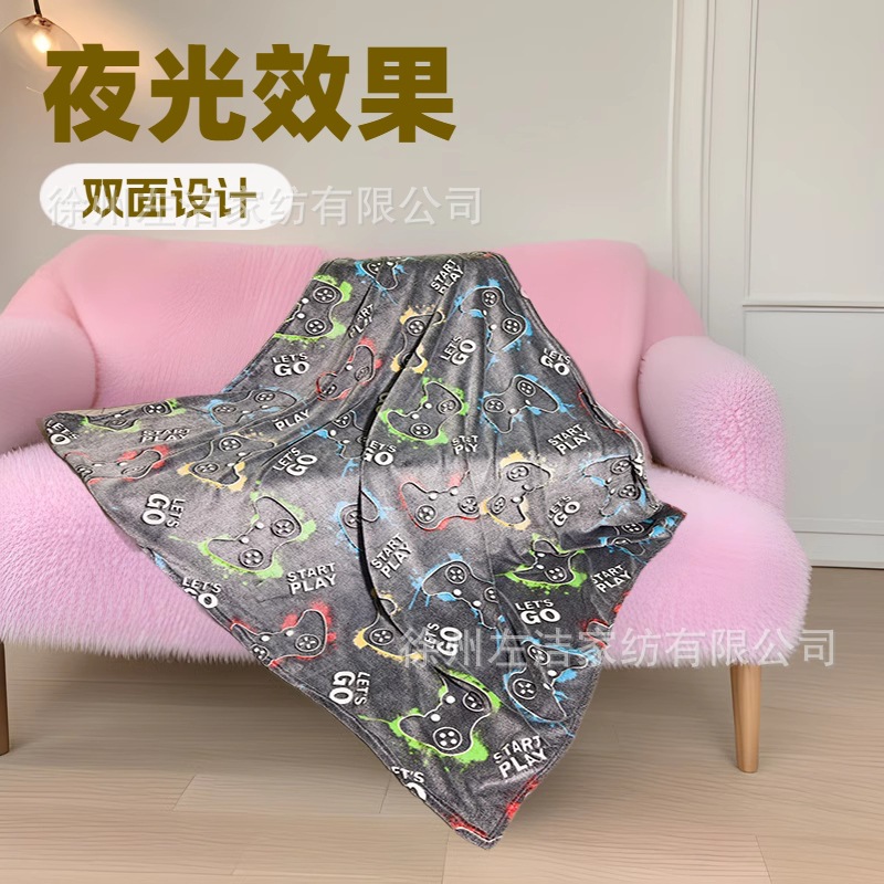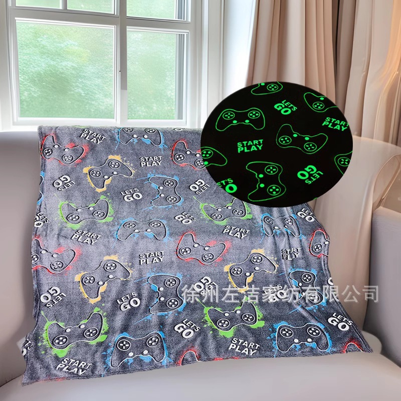 재고 플래넬 게임 핸들 빛나는 담요 소파 홈 섬유 파자마 형광 천 장식 슈퍼 소프트 크리스마스
