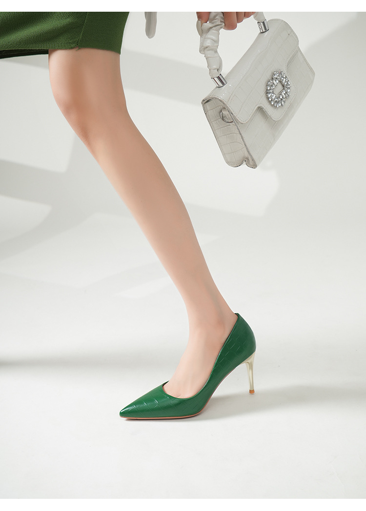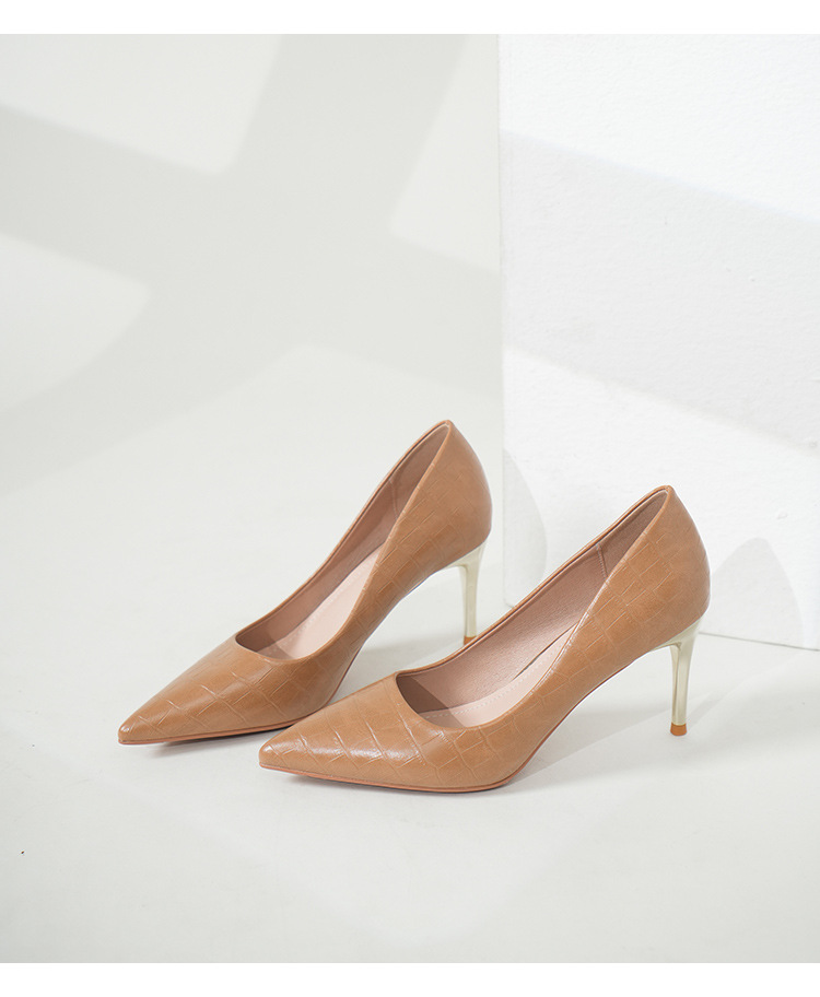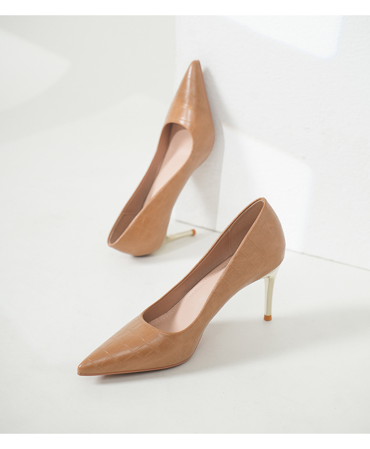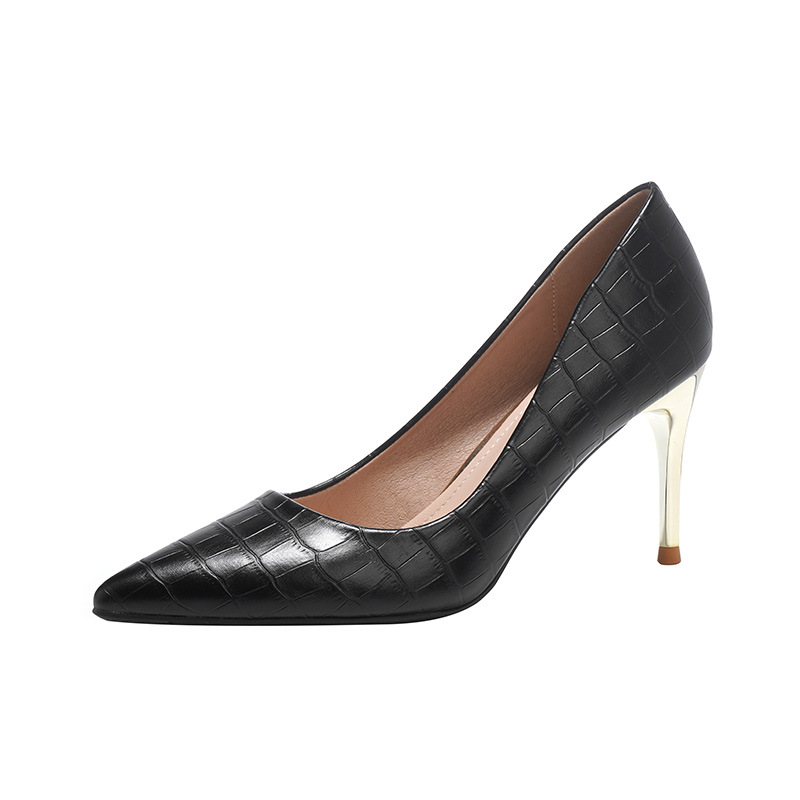 가을 2024 새로운 격자 무늬 포인팅 신발 우아한 블랙 전문 작업 신발 디자인 하이힐 여성용 스틸레토 힐 싱글 레이어 신발스토어 가기