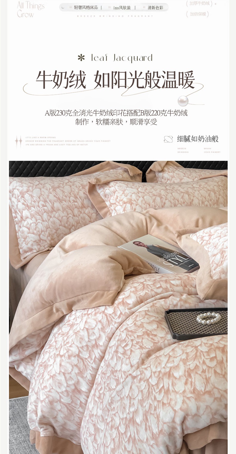 (종합) Jinxi 2025 새로운 230g 인쇄 우유 벨벳 4 피스 세트 높은 무게 두꺼운 우유 벨벳 4