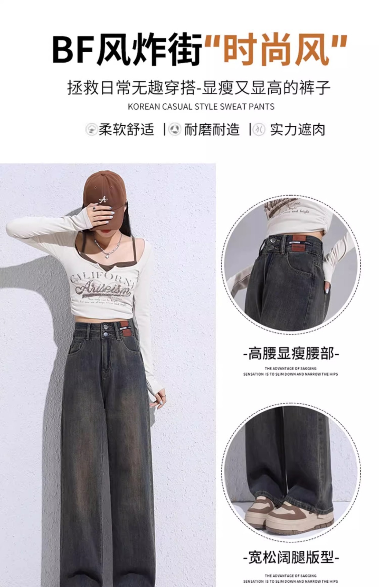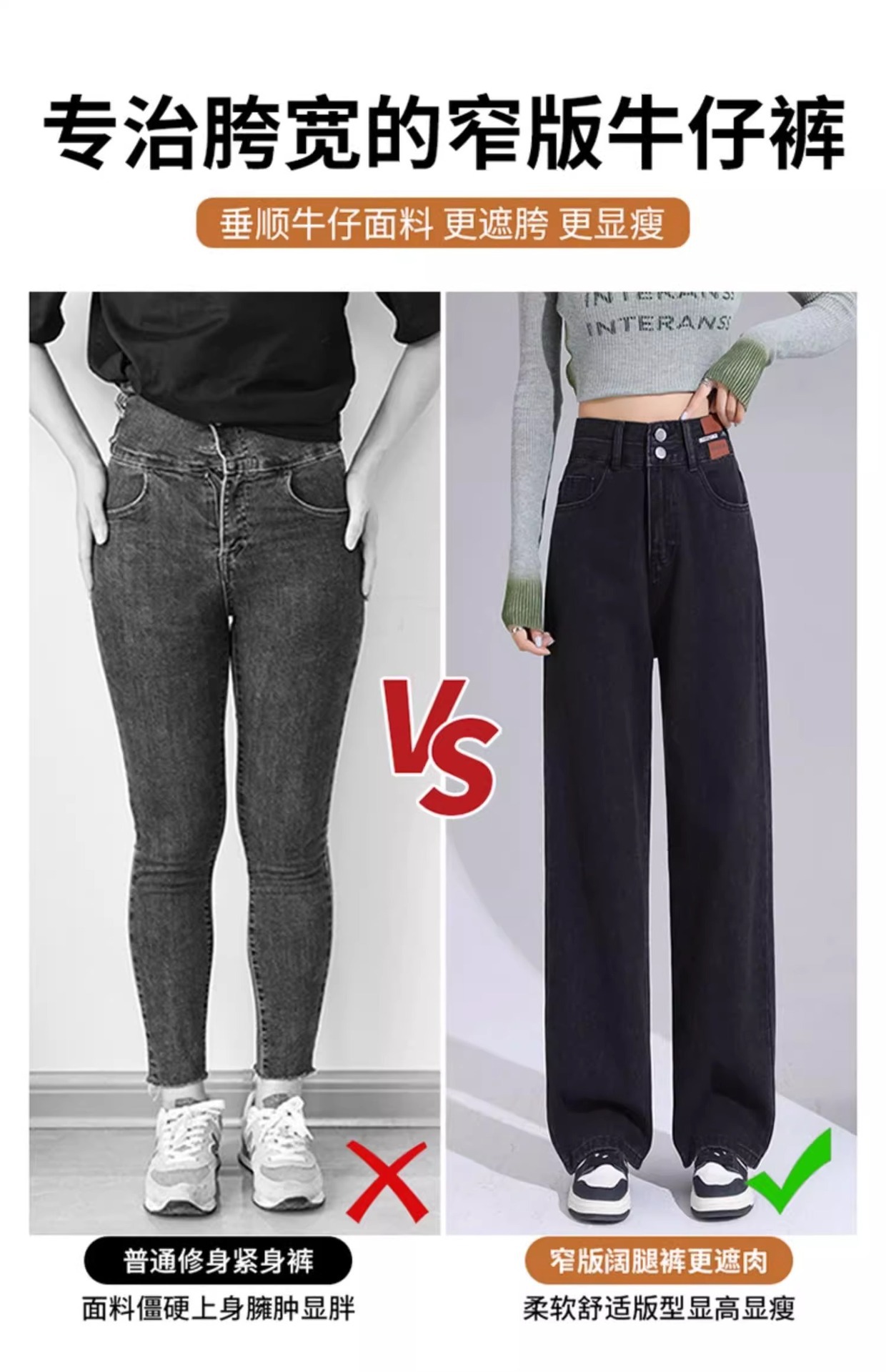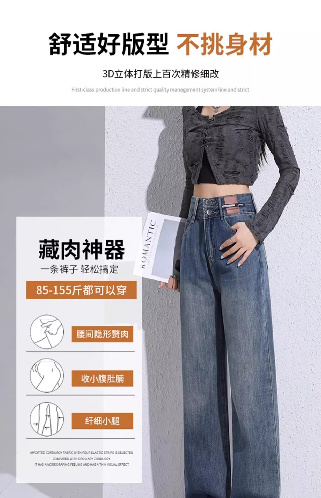 겨울 기모 두꺼운 와이드 레그 청바지 여성용 트렌디 올매치 하이 웨이스트 슬리밍 좁은 디자인 센스 캐주얼 스트레이트 팬츠스토어 가기