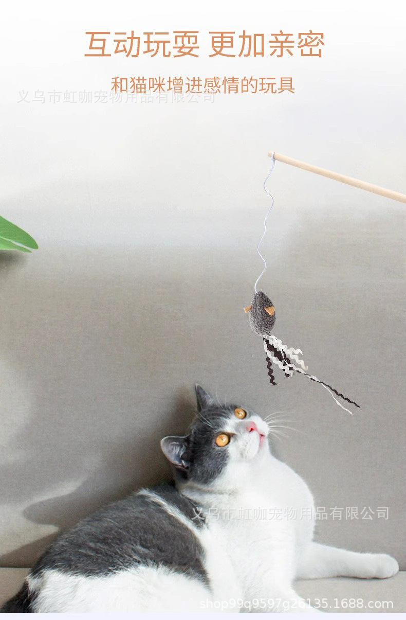 재고 도매 애완 동물 용품 고양이 티커 봉제 마우스 모양의 나무 기둥 고양이 티커 벨 고양이 장난감스토어 가기