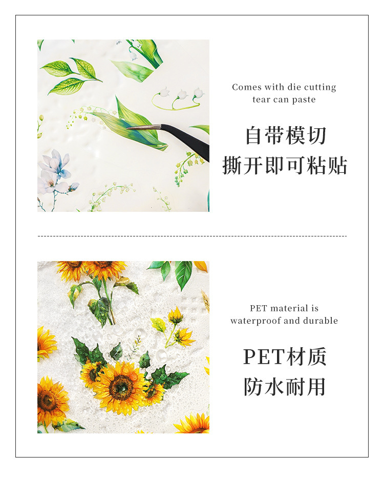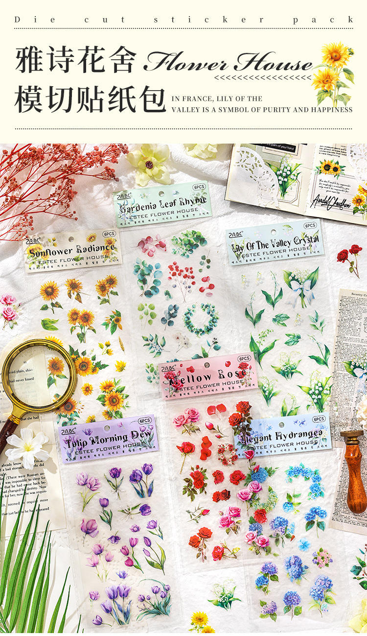 야시 꽃 집 시리즈 투명 방수 애완 동물 스티커 복고풍 식물 꽃 DIY 손 계정 장식 재료 콜라주