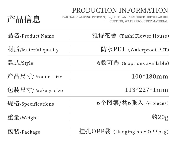 야시 꽃 집 시리즈 투명 방수 애완 동물 스티커 복고풍 식물 꽃 DIY 손 계정 장식 재료 콜라주스토어 가기