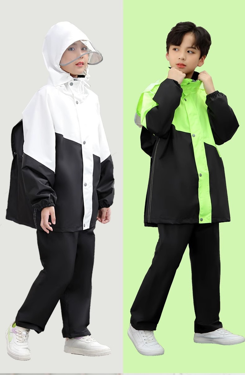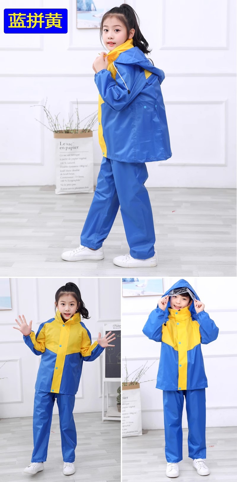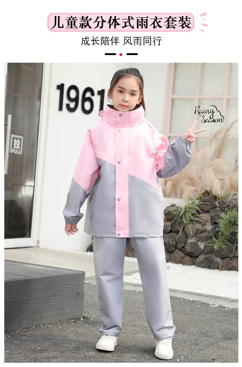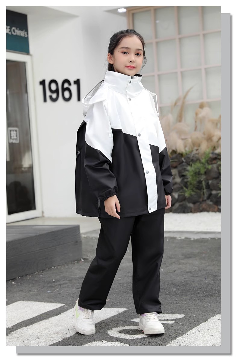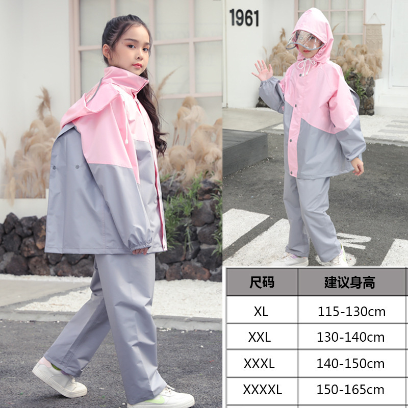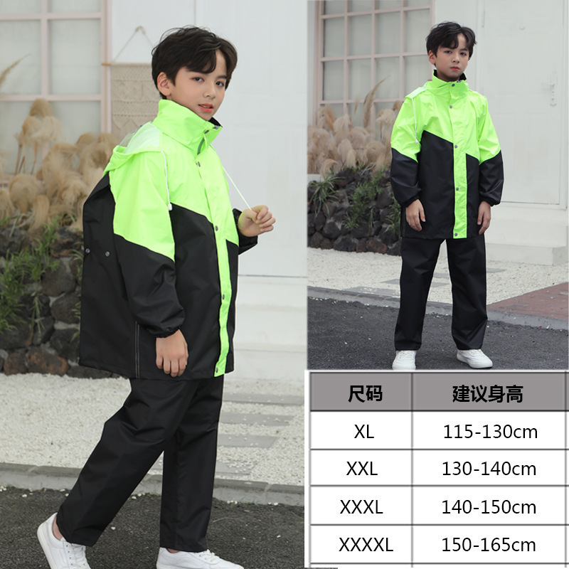 어린이 비옷 장화, 초등 및 중등 학교 학생을위한 소년 소녀를위한 세트 방수 전신 분할 비 마을