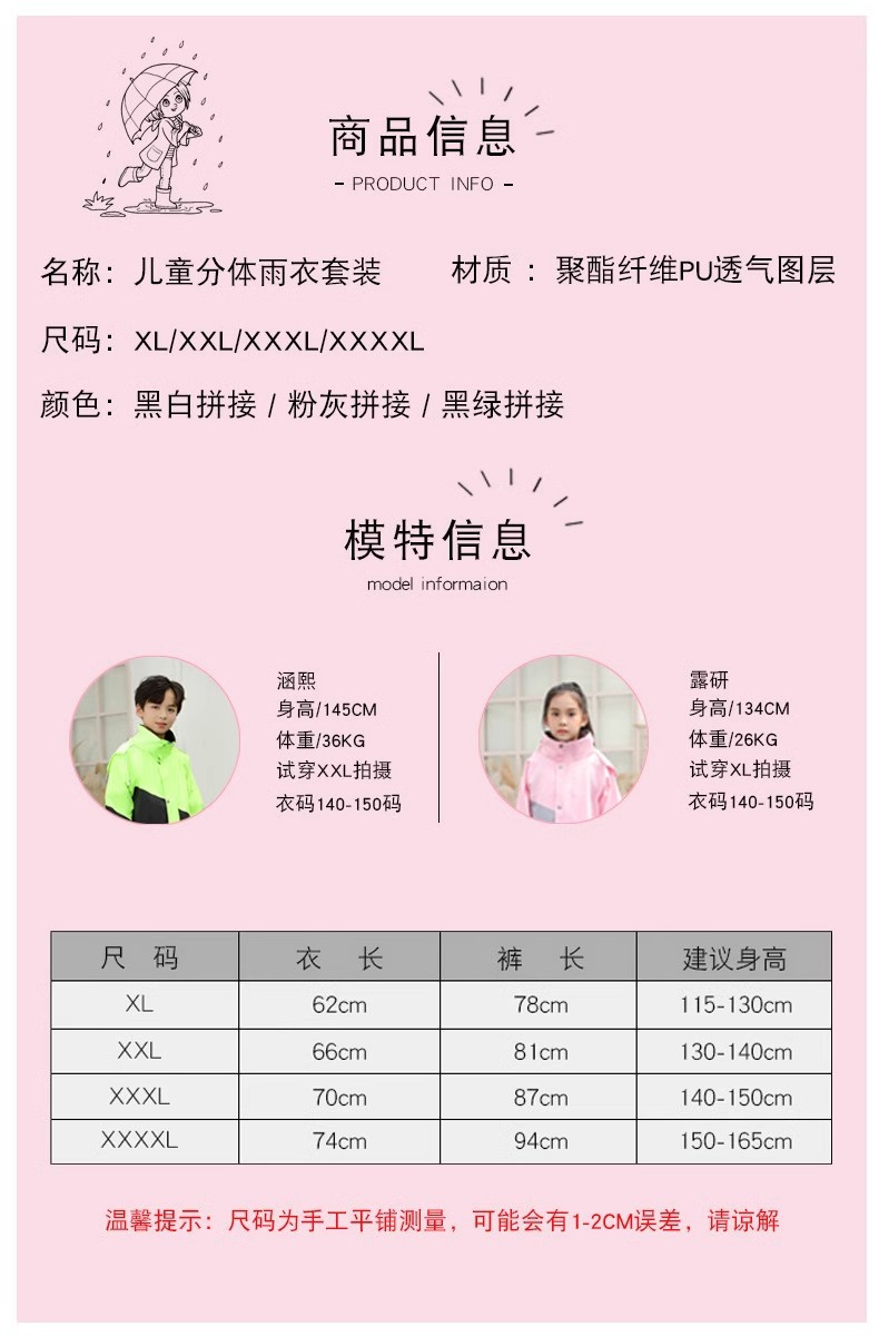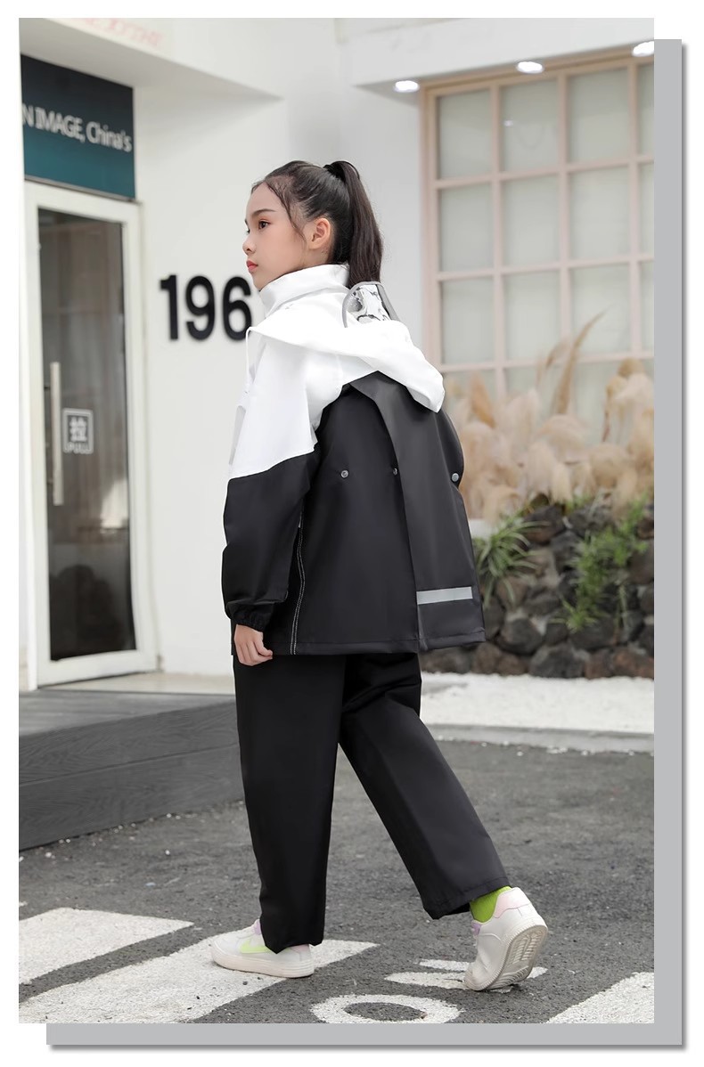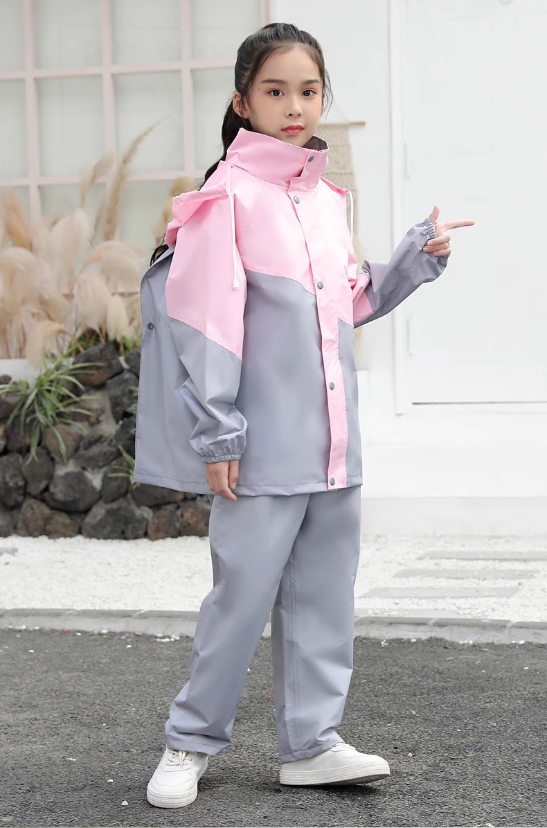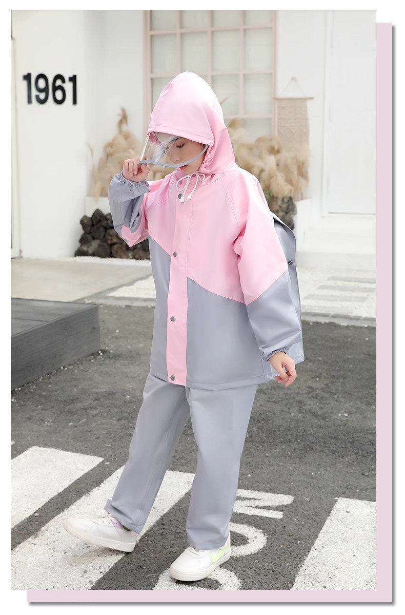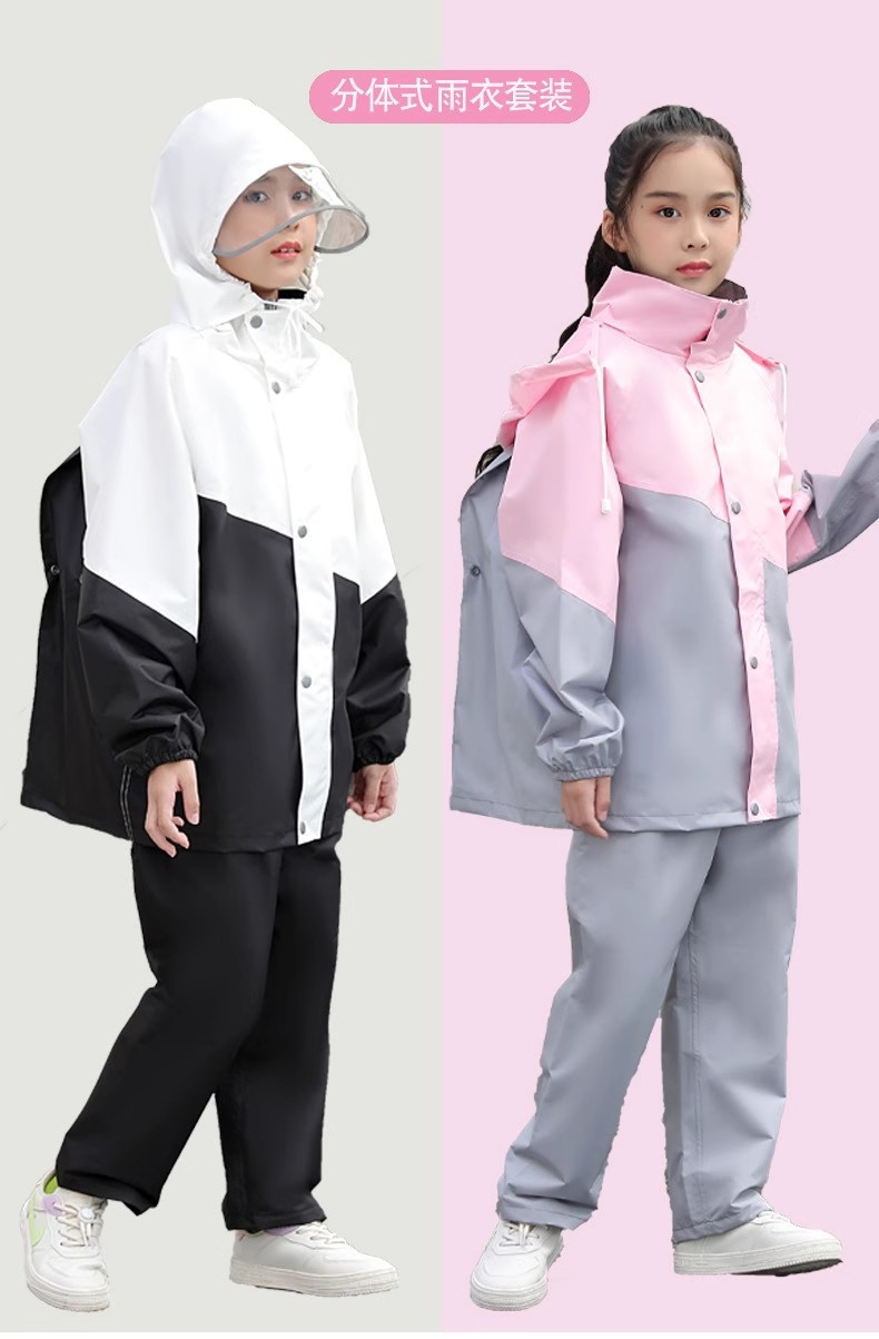 어린이 비옷 장화, 초등 및 중등 학교 학생을위한 소년 소녀를위한 세트 방수 전신 분할 비 마을