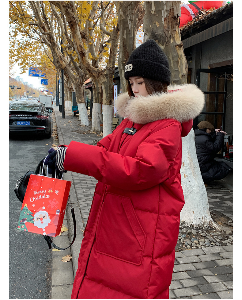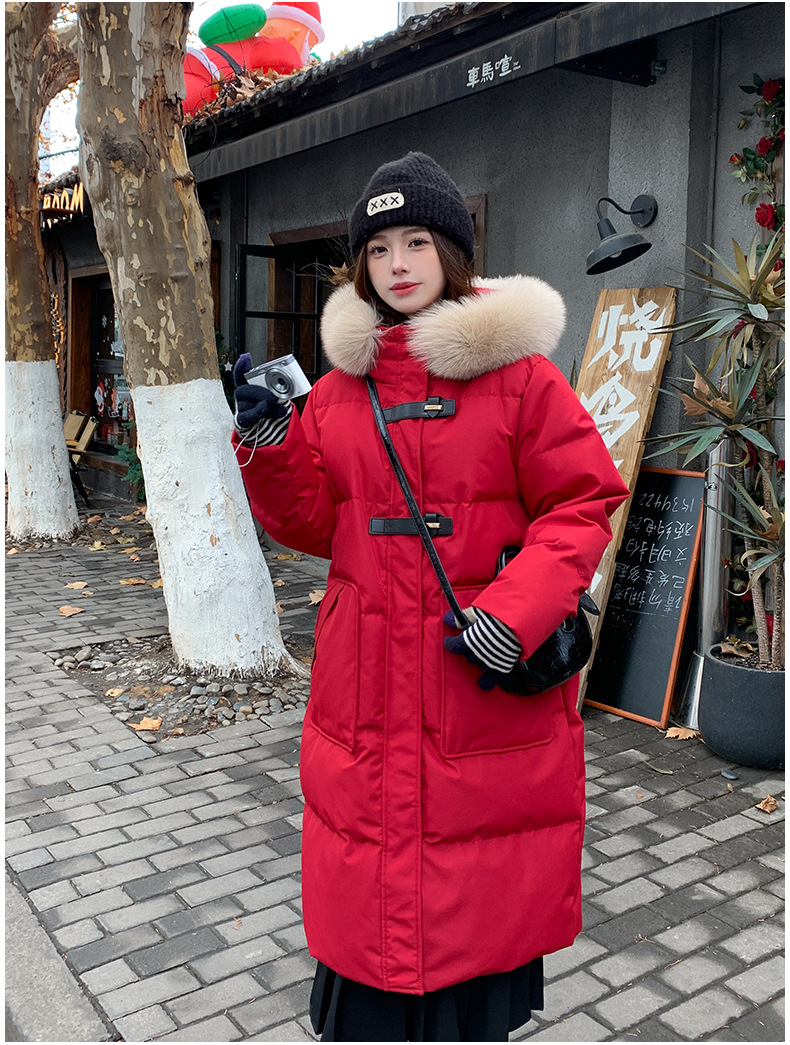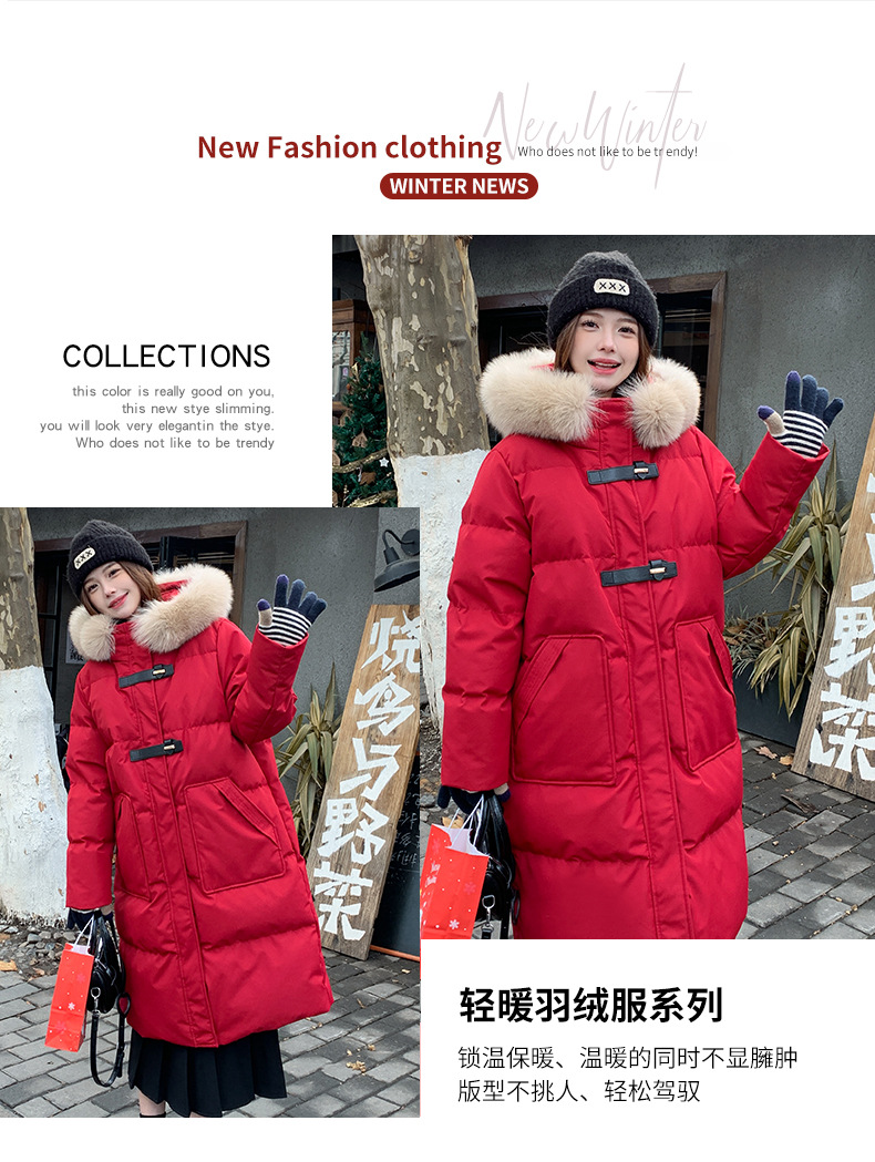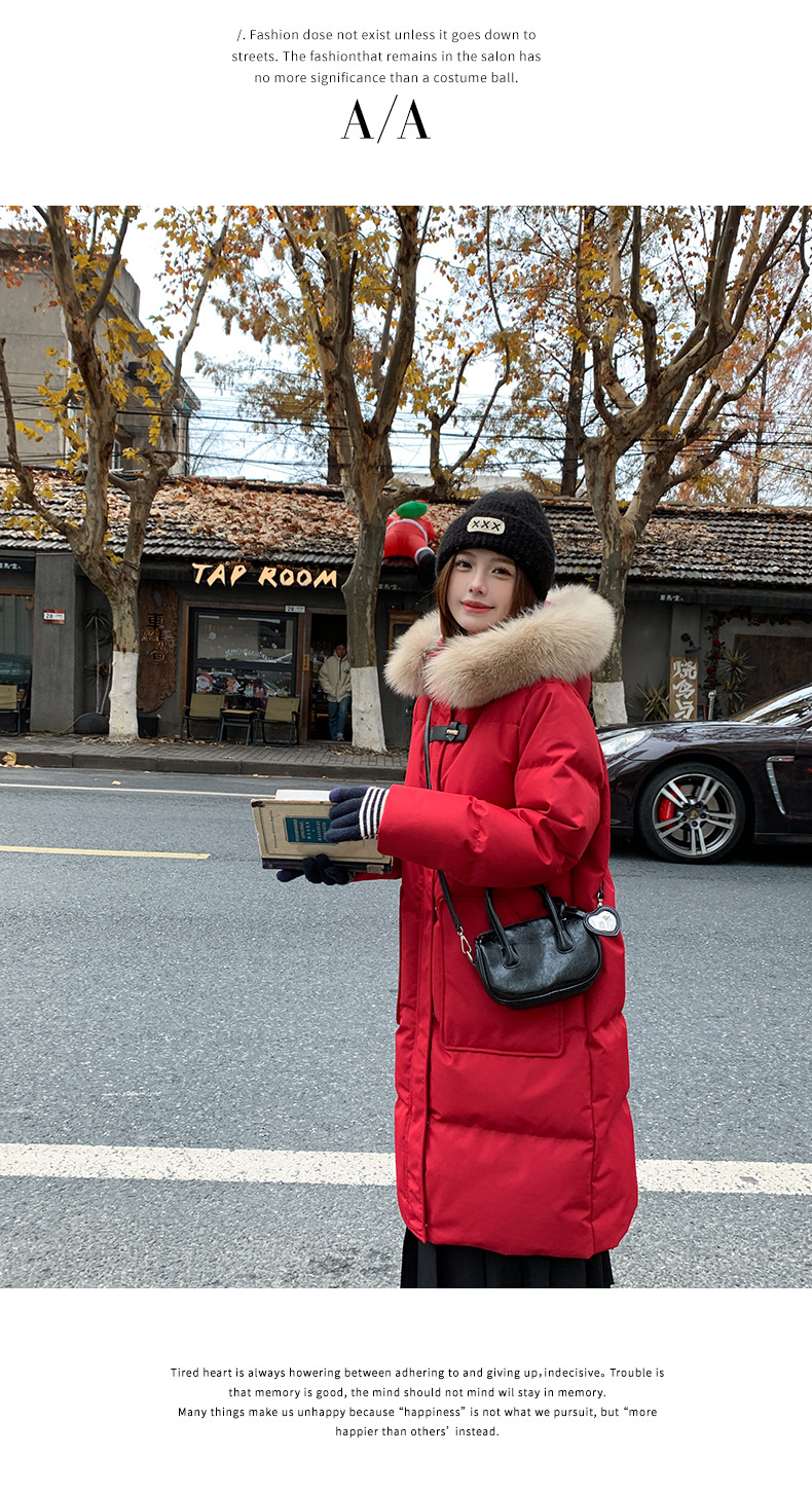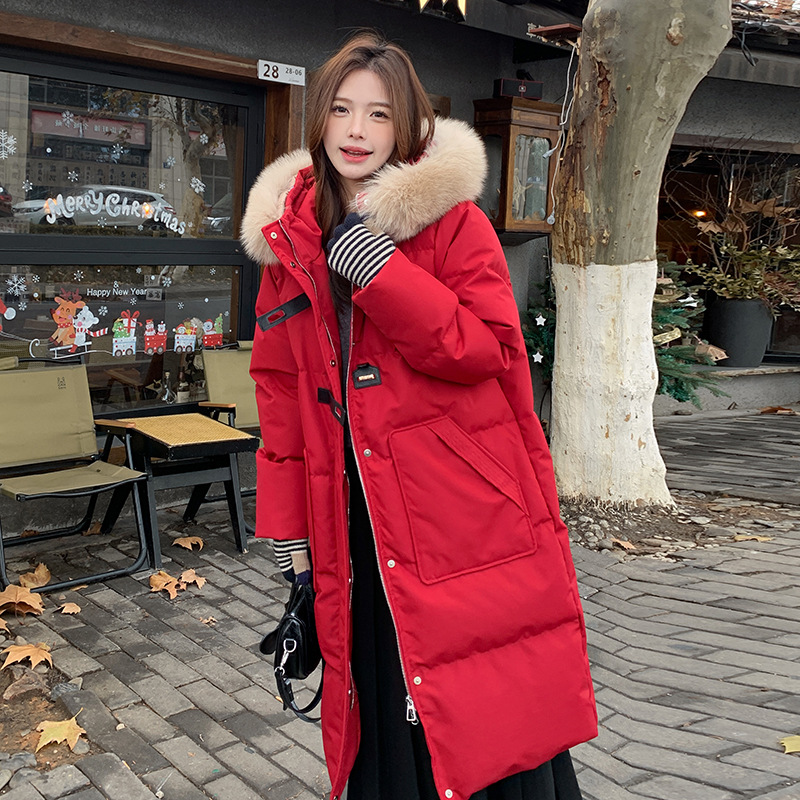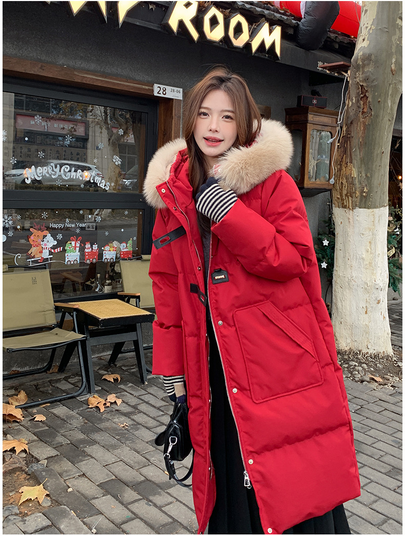 새로운 다운 재킷 여성 겨울 2024 새로운 캐주얼 두꺼운 화이트 덕 다운 새해 레드 미드 길이 재킷스토어 가기
