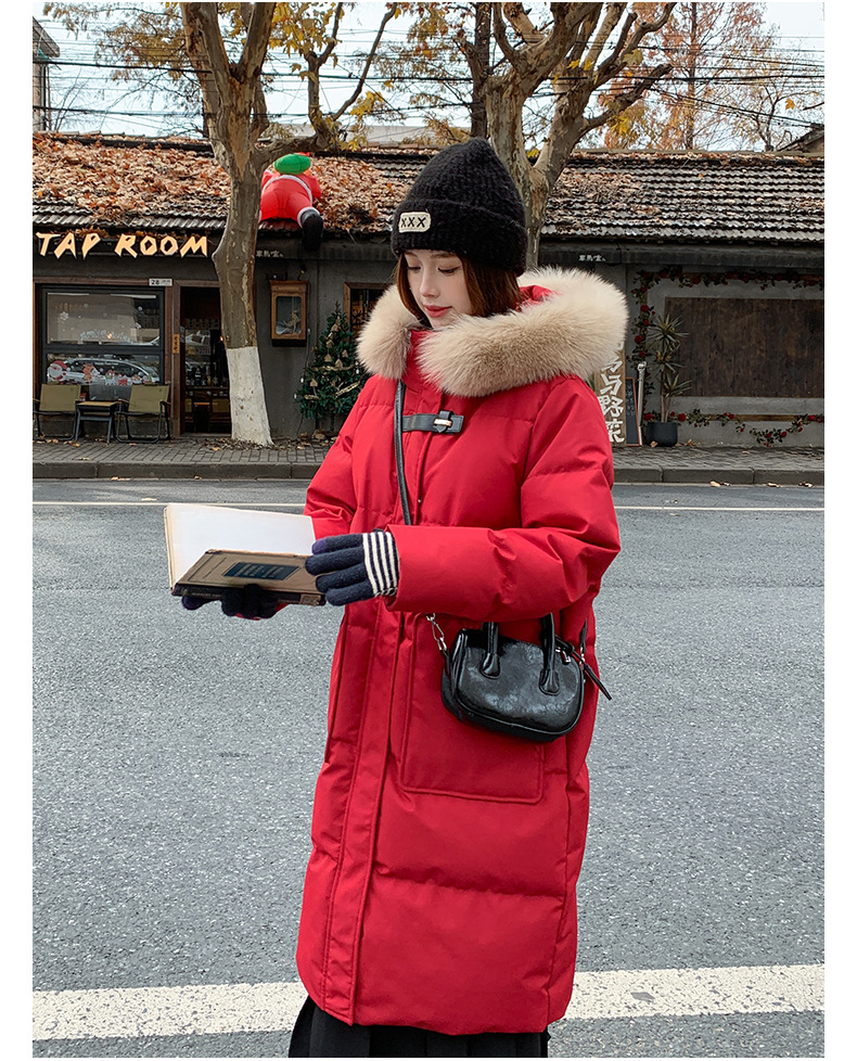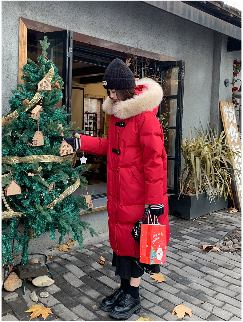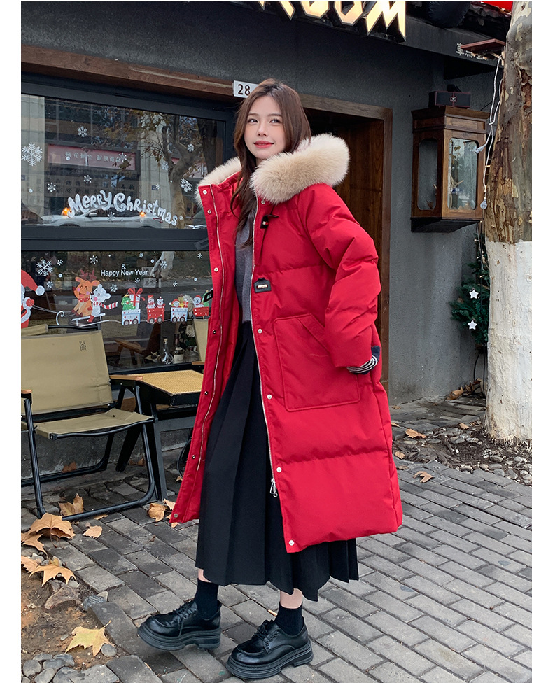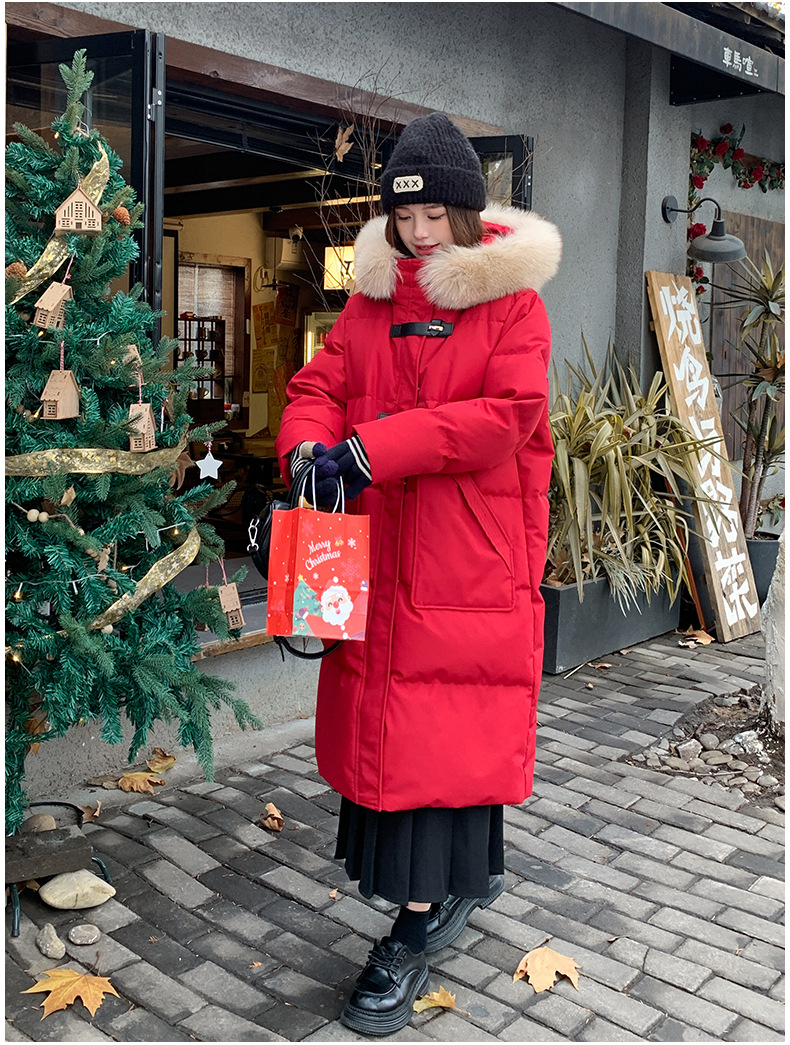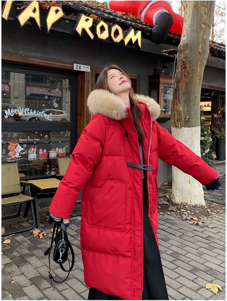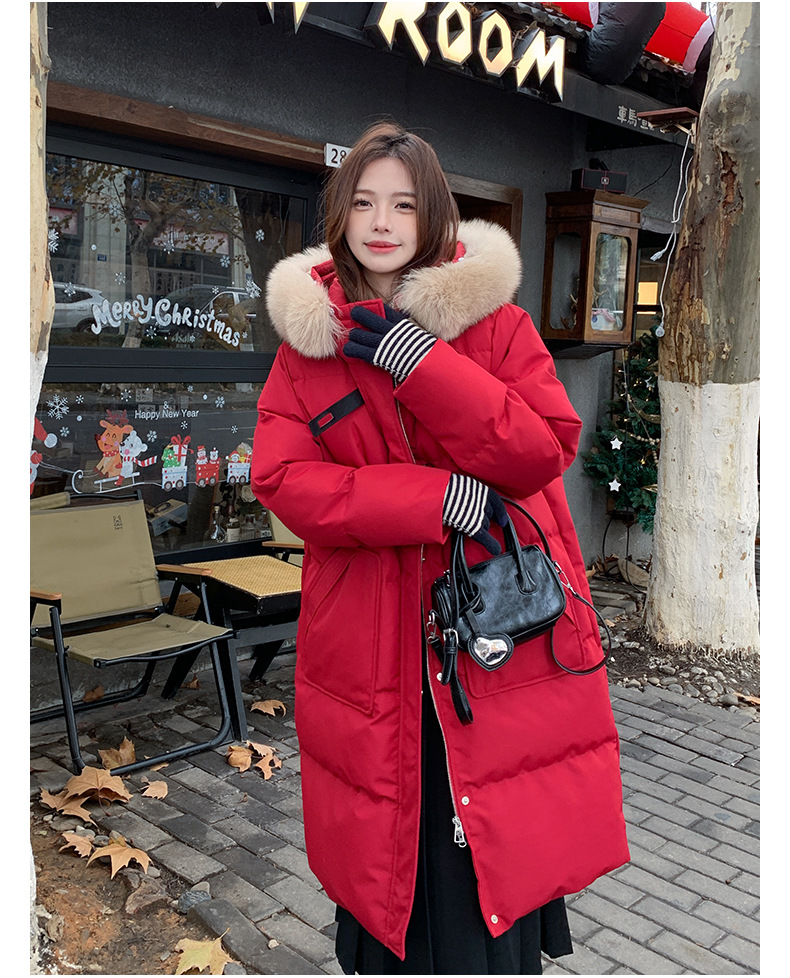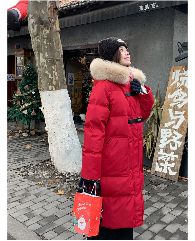 새로운 다운 재킷 여성 겨울 2024 새로운 캐주얼 두꺼운 화이트 덕 다운 새해 레드 미드 길이 재킷스토어 가기