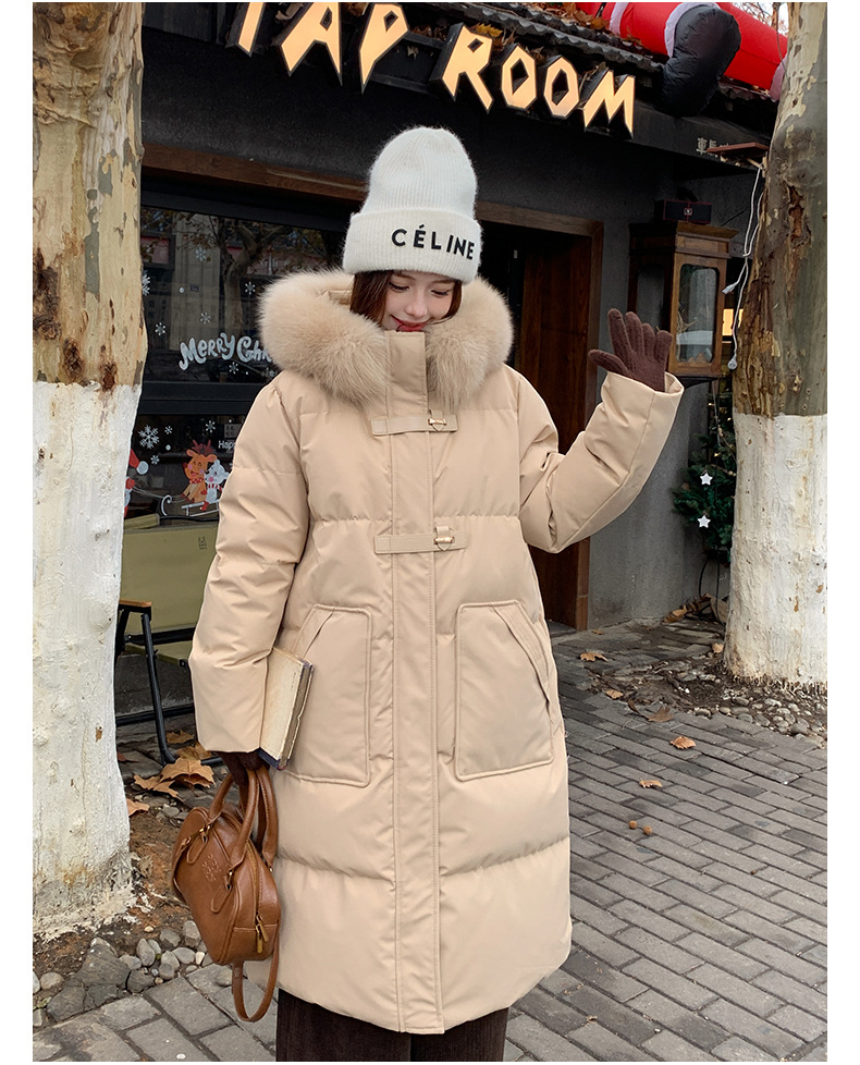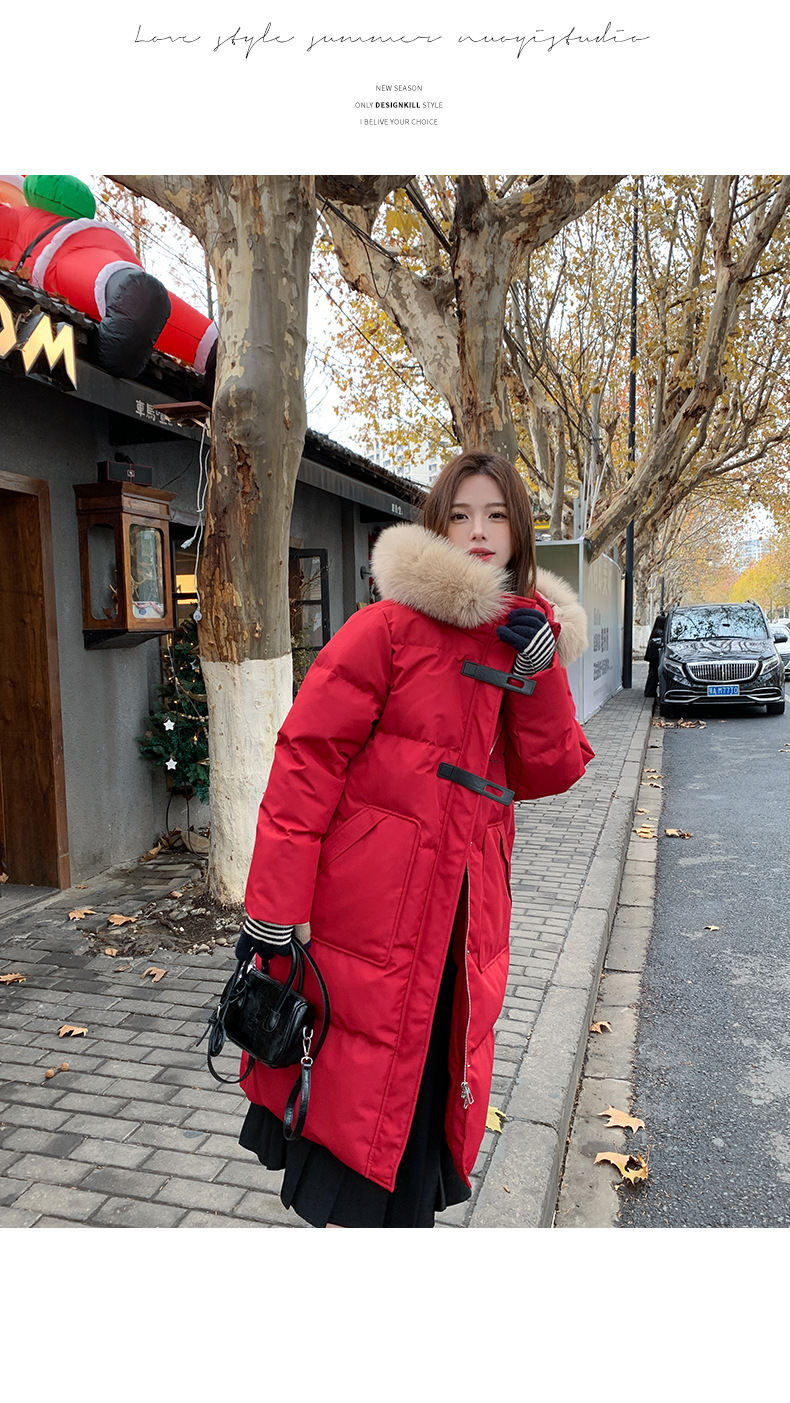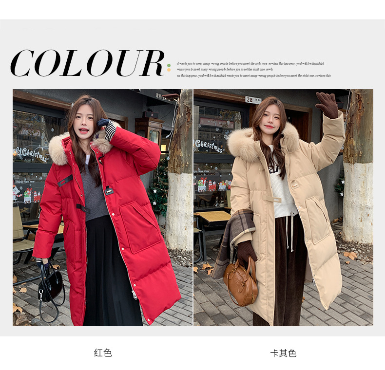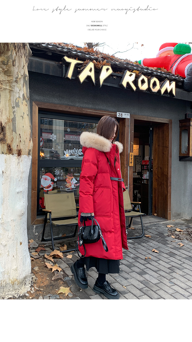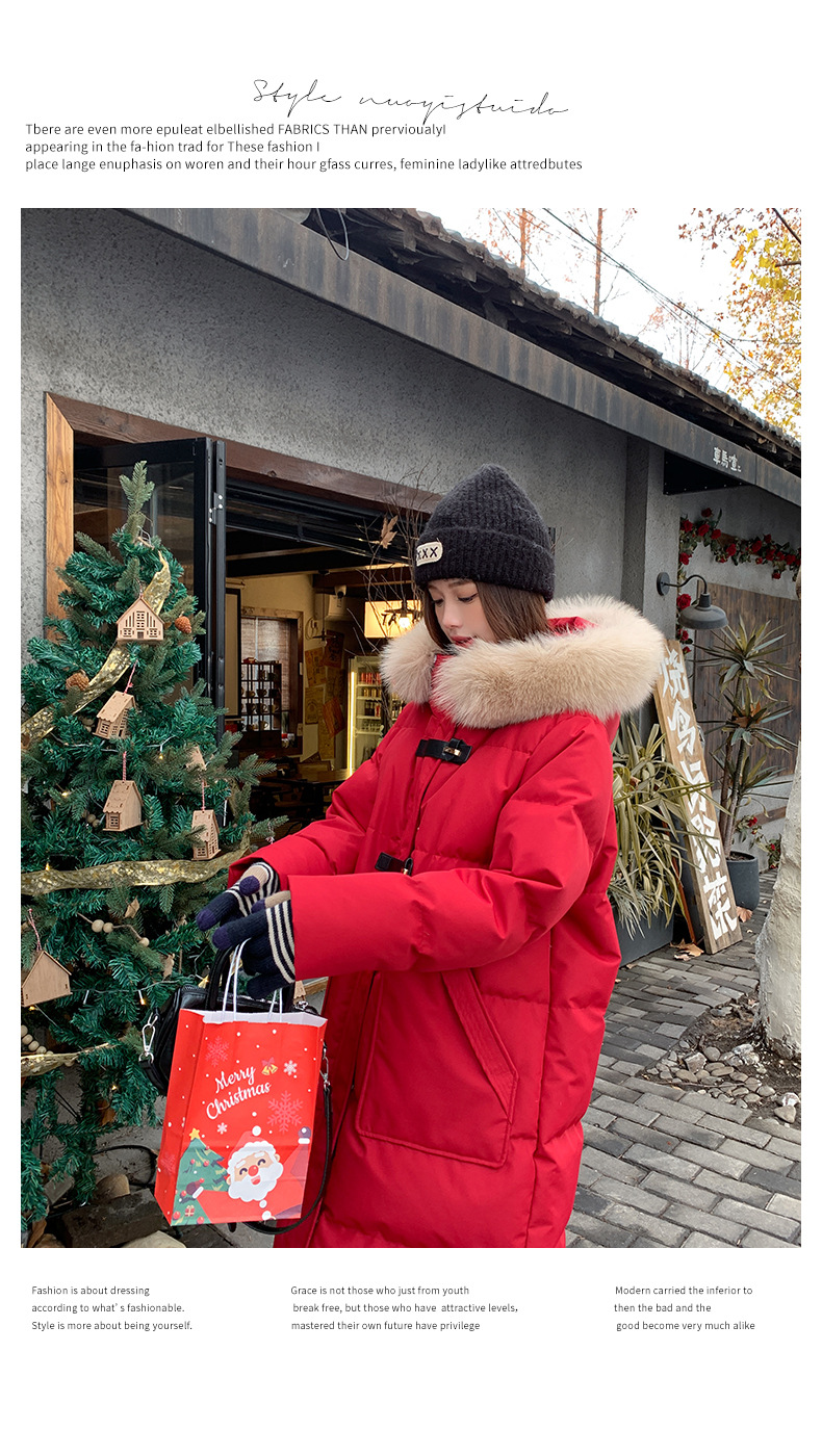 새로운 다운 재킷 여성 겨울 2024 새로운 캐주얼 두꺼운 화이트 덕 다운 새해 레드 미드 길이 재킷스토어 가기