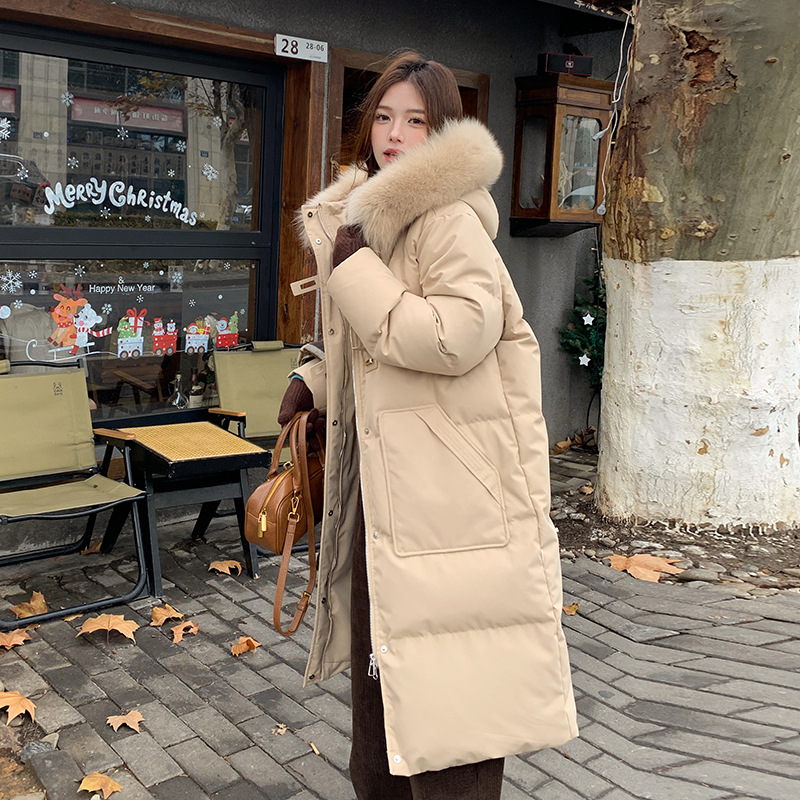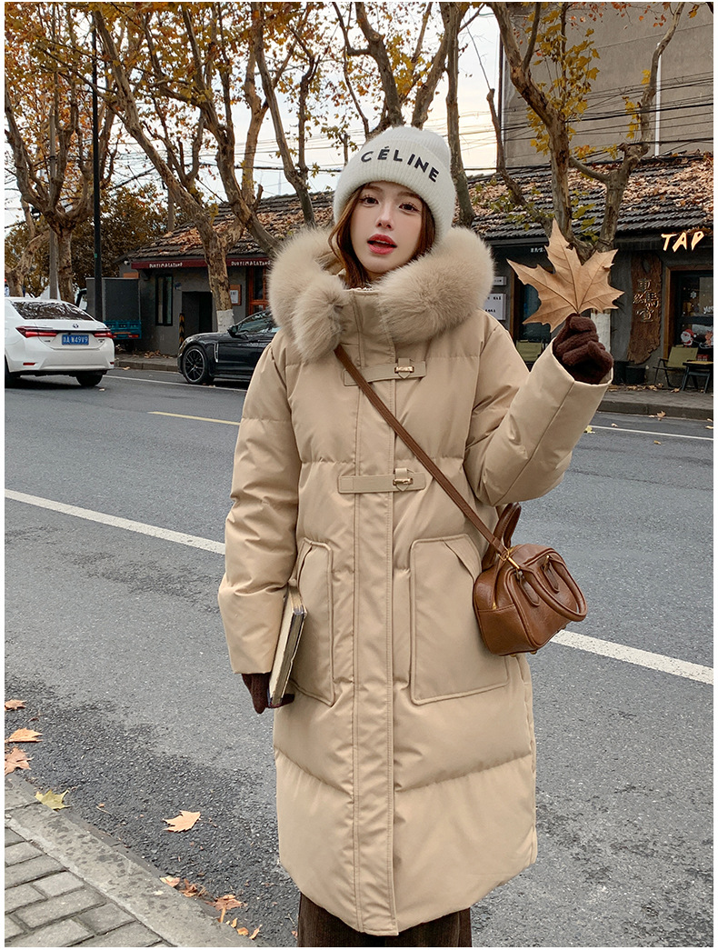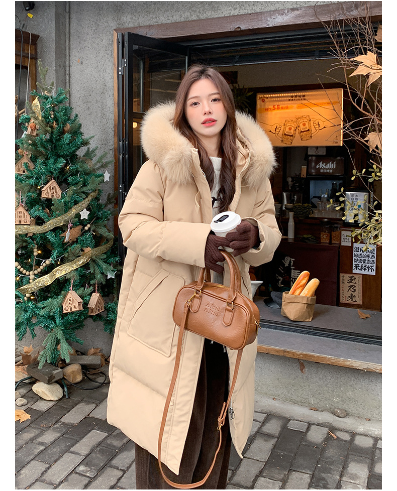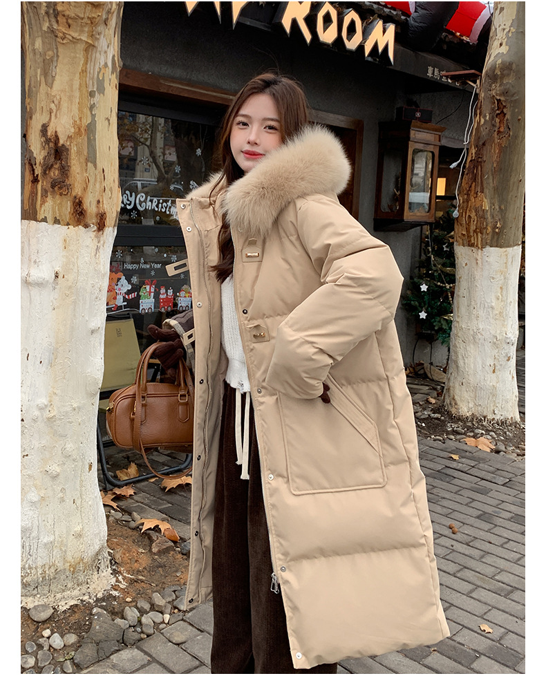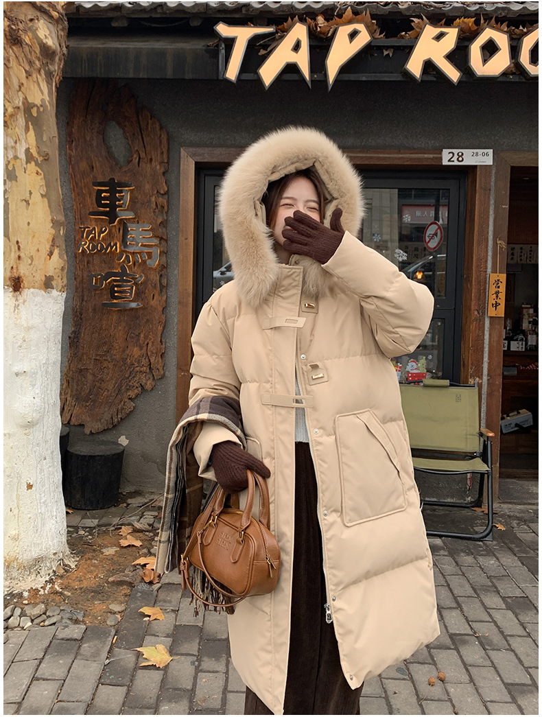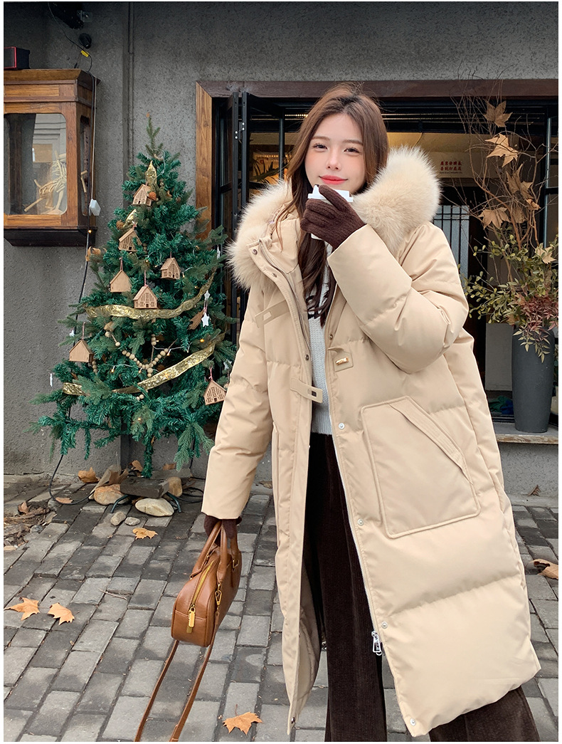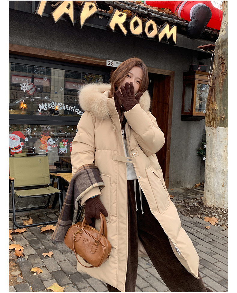 새로운 다운 재킷 여성 겨울 2024 새로운 캐주얼 두꺼운 화이트 덕 다운 새해 레드 미드 길이 재킷스토어 가기