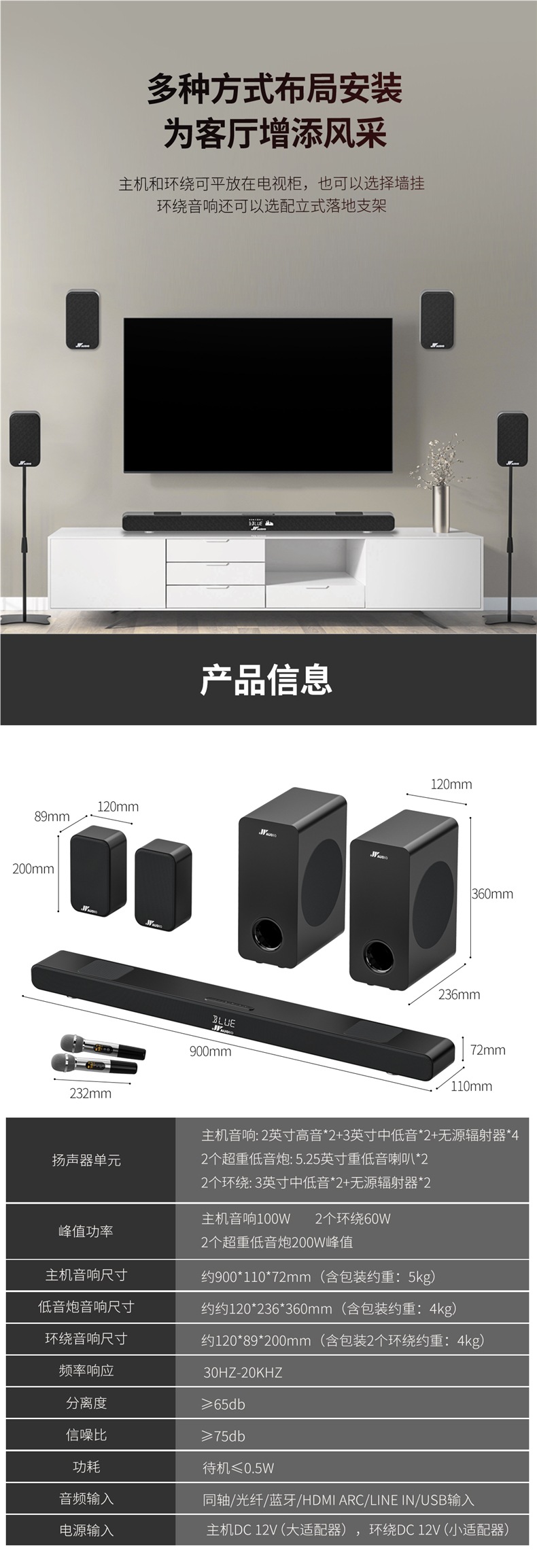 에코 벽 TV 외부 오디오 홈 거실 서라운드 사운드 베를린 홈 시어터