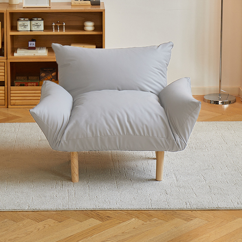 • 원목 다리 모델/싱글 시트 라이트 그레이/오염 방지 고양이 스크래치 가죽 [등받이 및 팔걸이 5단계 조절]