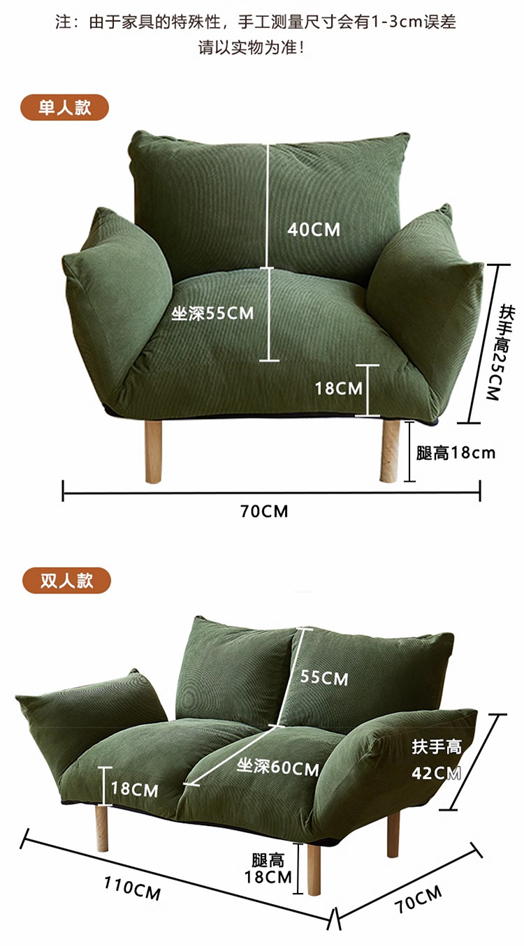 • 원목다리모델/더블그린/피부친화적인 테리벨벳 [등받이와 팔걸이 5단계 조절]
