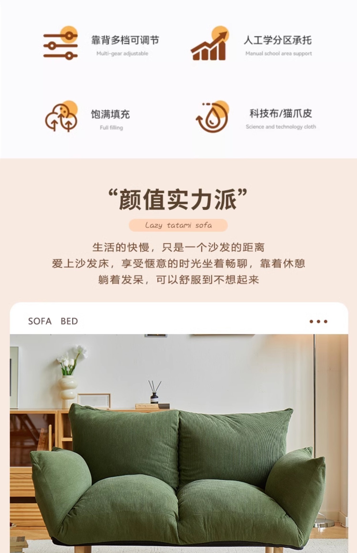 게으른 소파 거짓말 잠자는 침실 무료 조정 싱글 및 더블 작은 소파 침대 접는 다다미 쿠션스토어 가기