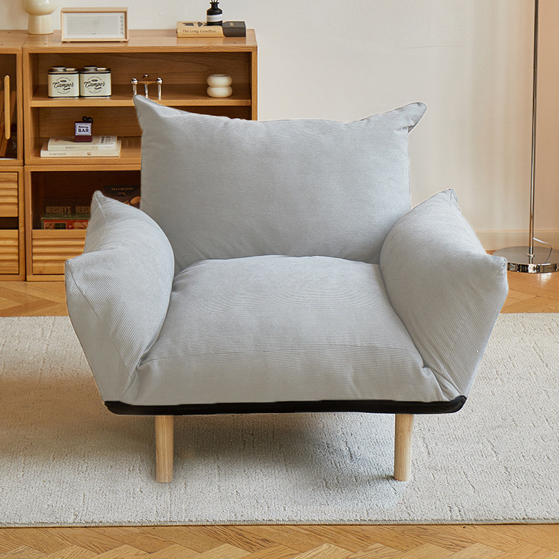 • 원목다리모델/싱글그레이/피부친화적인 테리벨벳 [등받이와 팔걸이 5단계 조절]