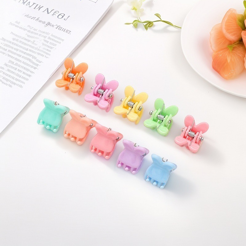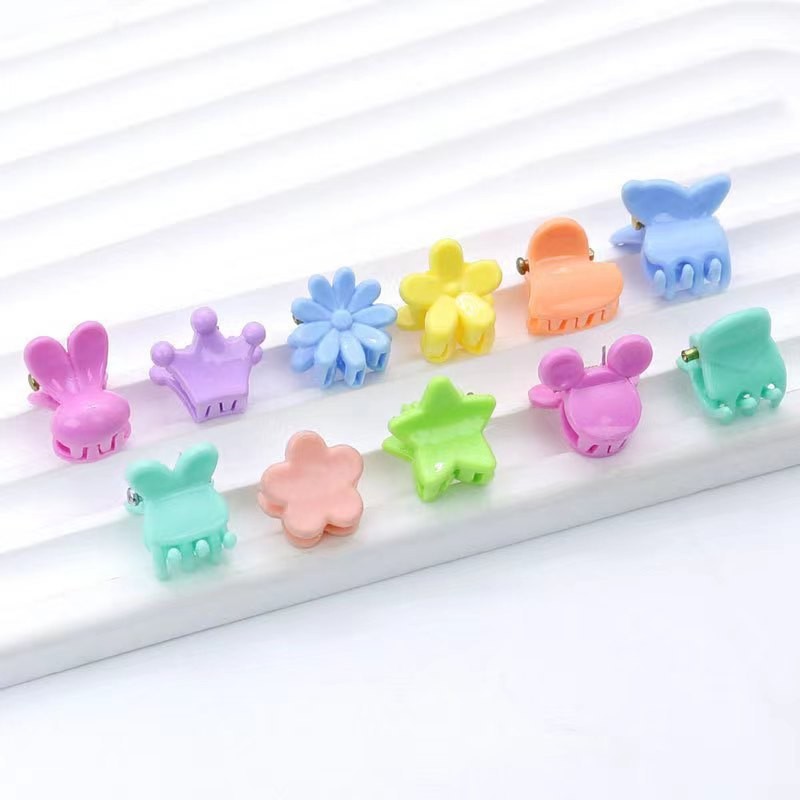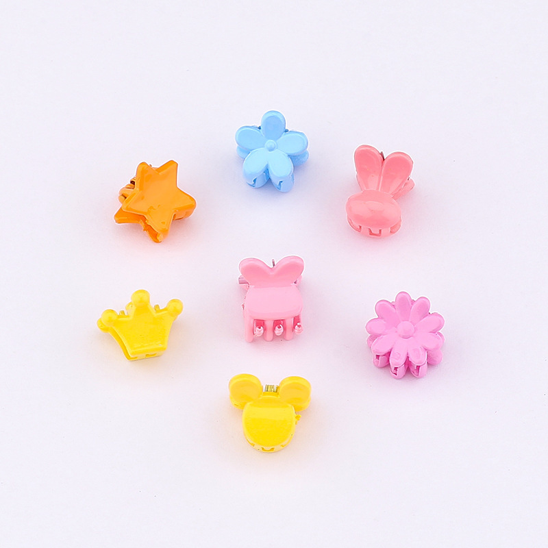 한국 스타일 어린이 작은 게 클립 마카롱 컬러 미니 나비 꽃 헤어 클립 헤드폰 크라운 미키 리우 하이파 그랩 클립