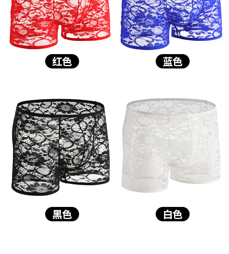 남자 레이스 복서 속옷 반 투명 높은 탄성 국경 대외 무역 도매 복서 바지스토어 가기