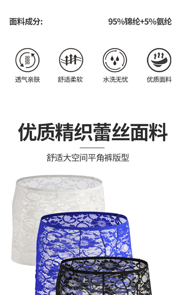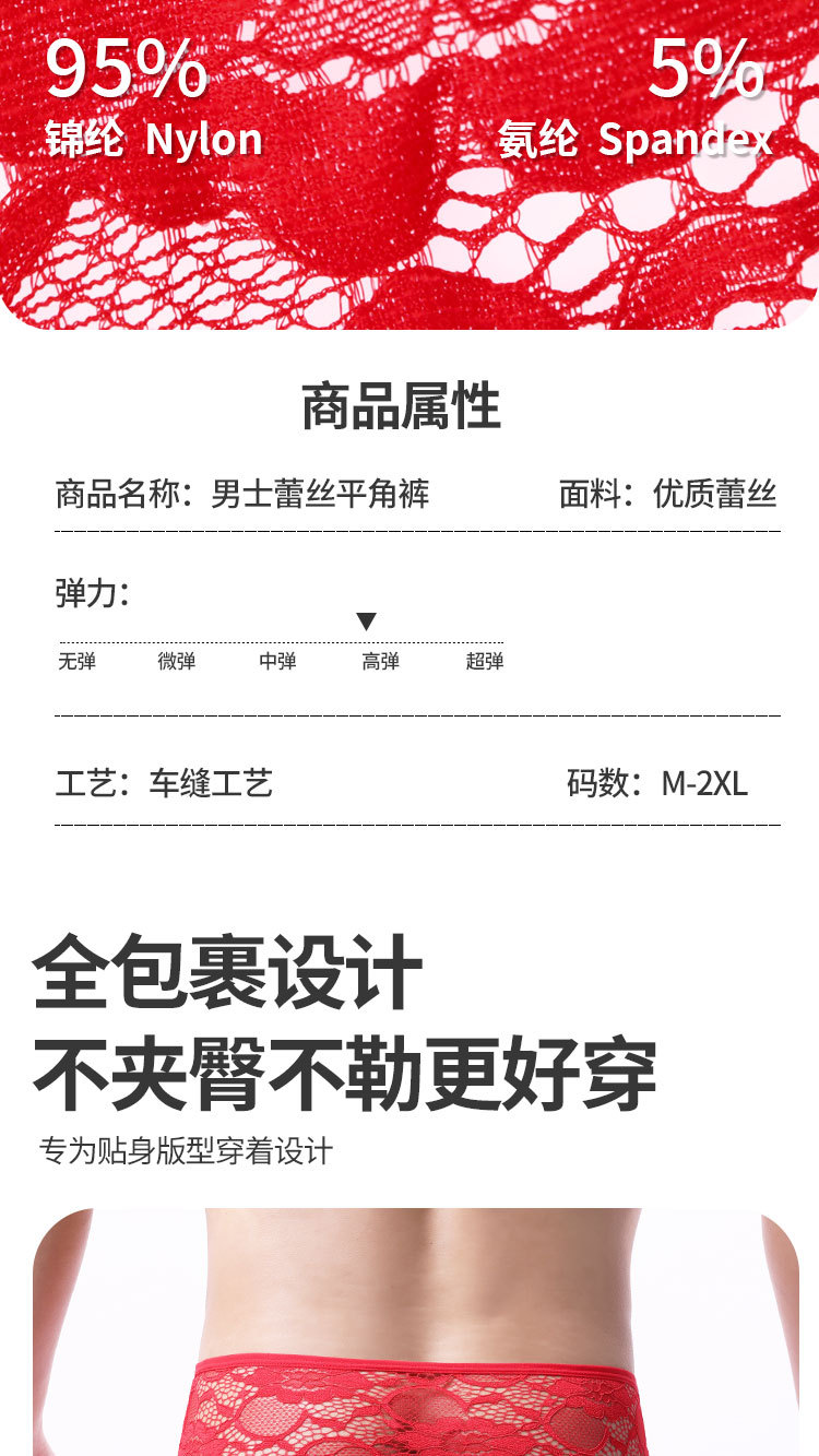 남자 레이스 복서 속옷 반 투명 높은 탄성 국경 대외 무역 도매 복서 바지