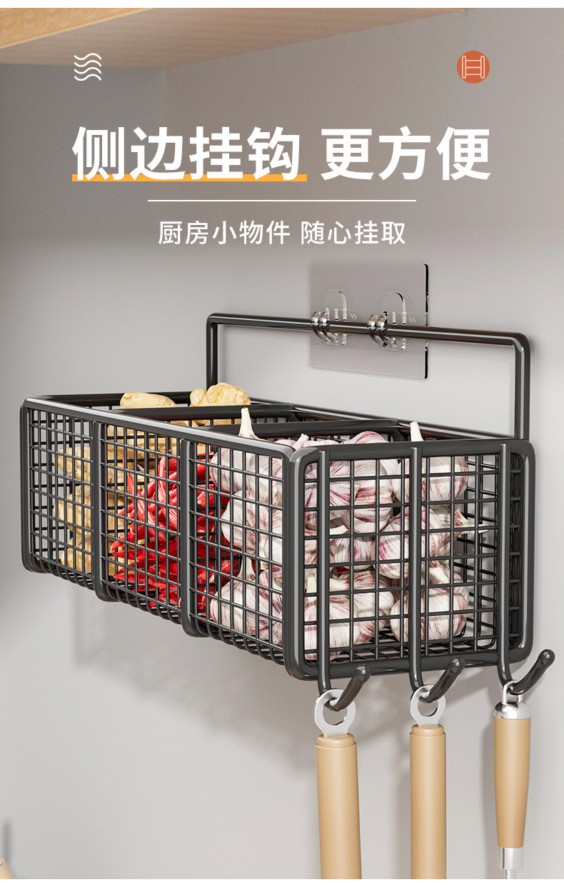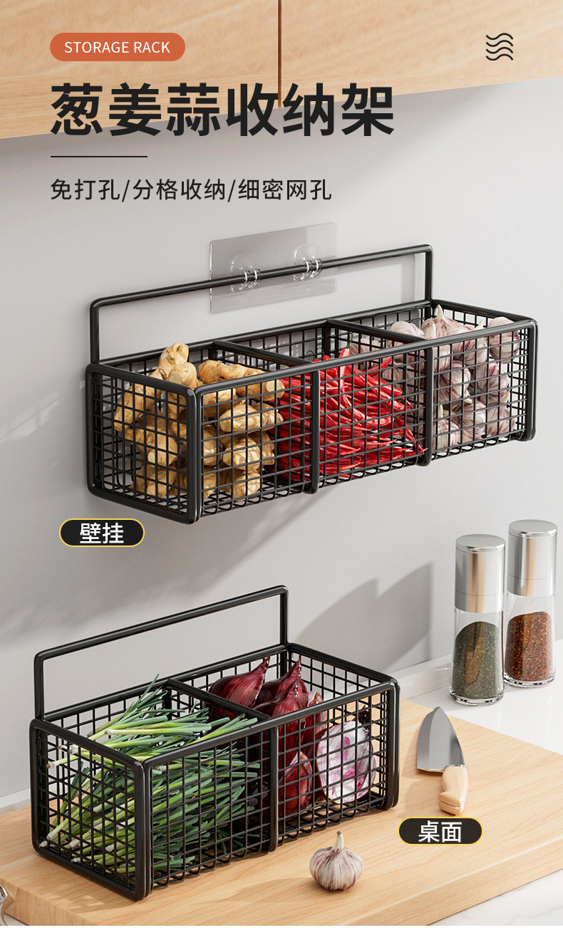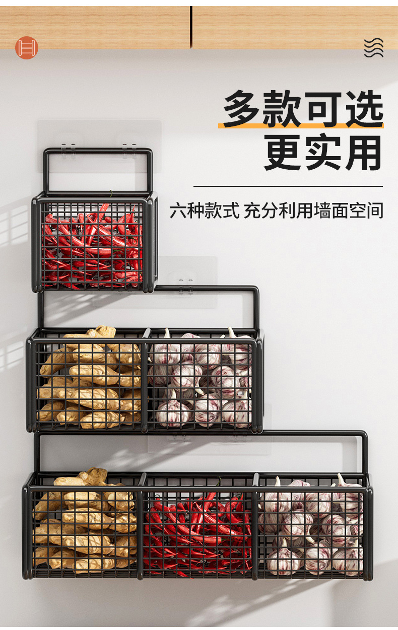소스 공장 두피, 생강 및 마늘 주방 랙 벽에 매달려있는 향신료 랙 생강과 마늘 저장 상자 펀치없는 벽 랙
