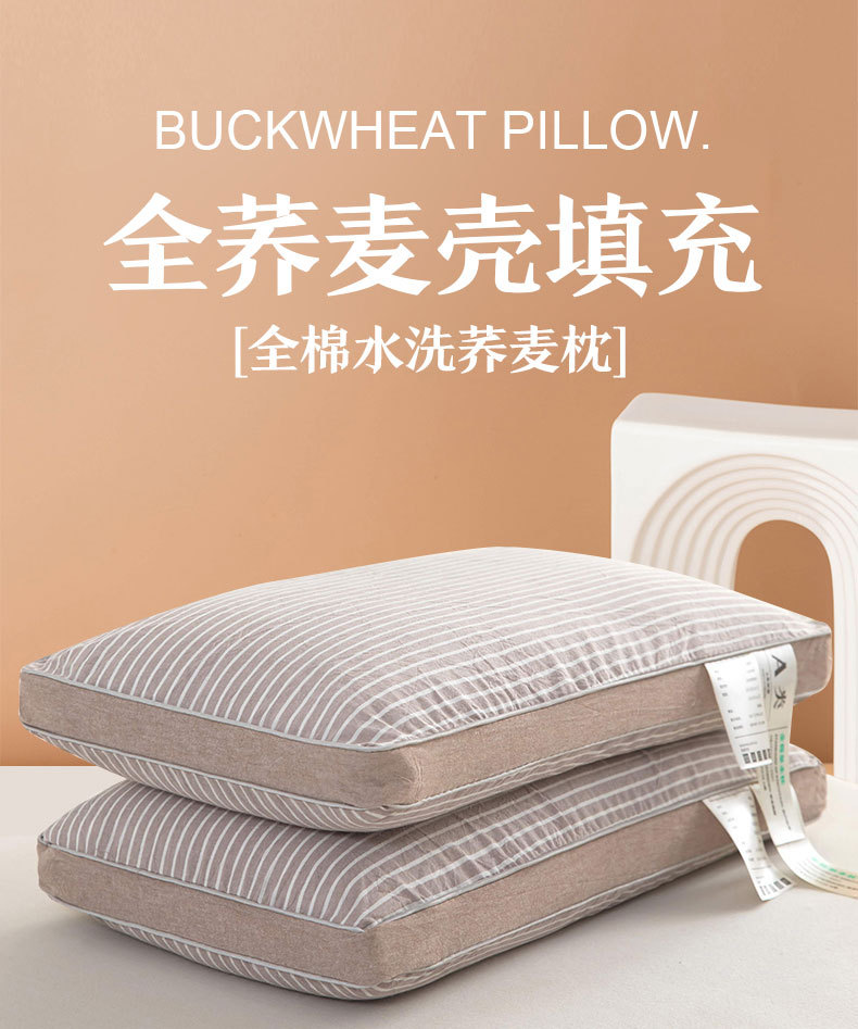 새로운 면 허벌 메밀 베개 베개 순수한 면 메밀 쉘 자궁 경부 척추 보호를위한 베개 케이스가있는 단일 기숙사 하드 베개 코어스토어 가기