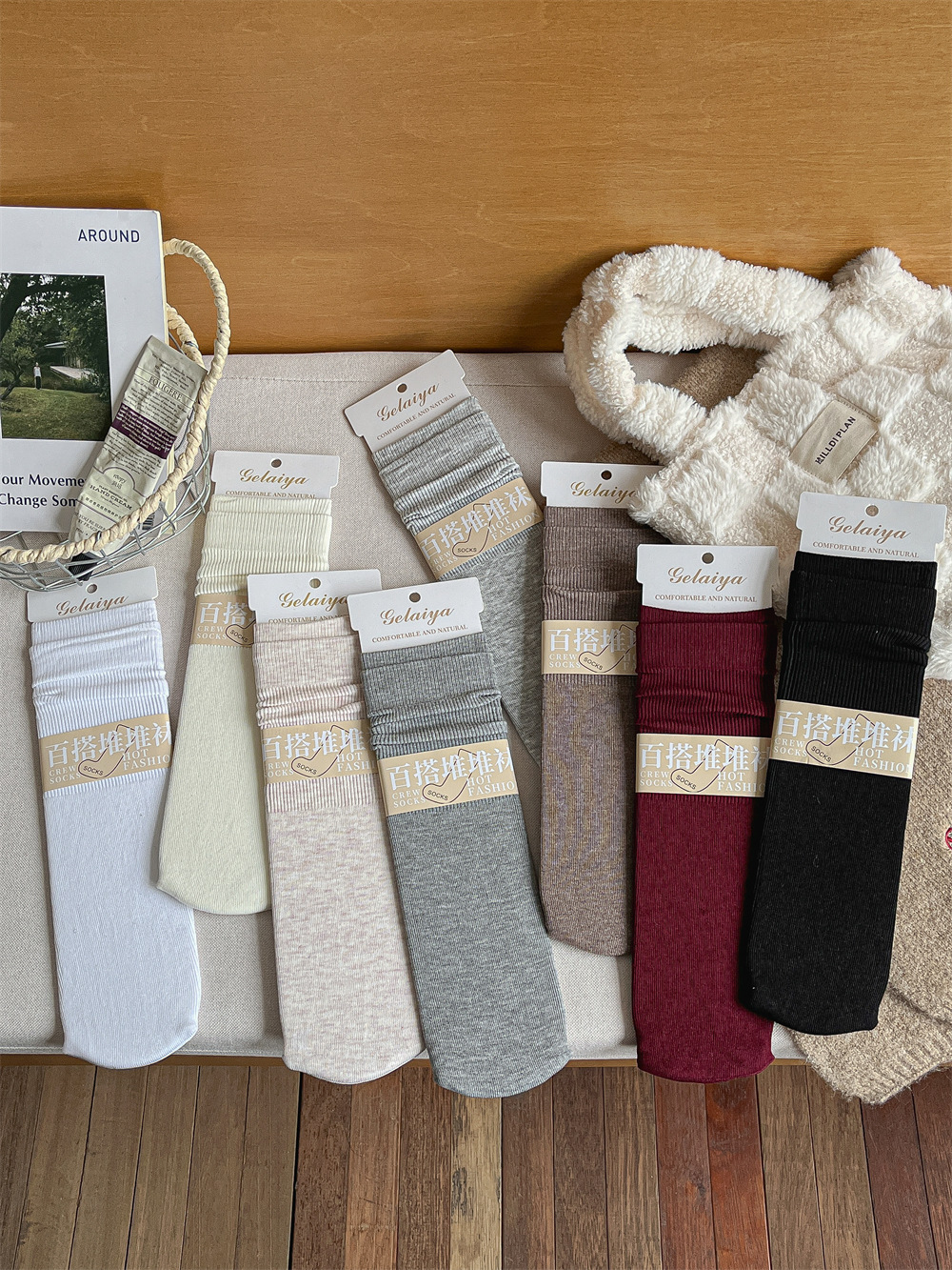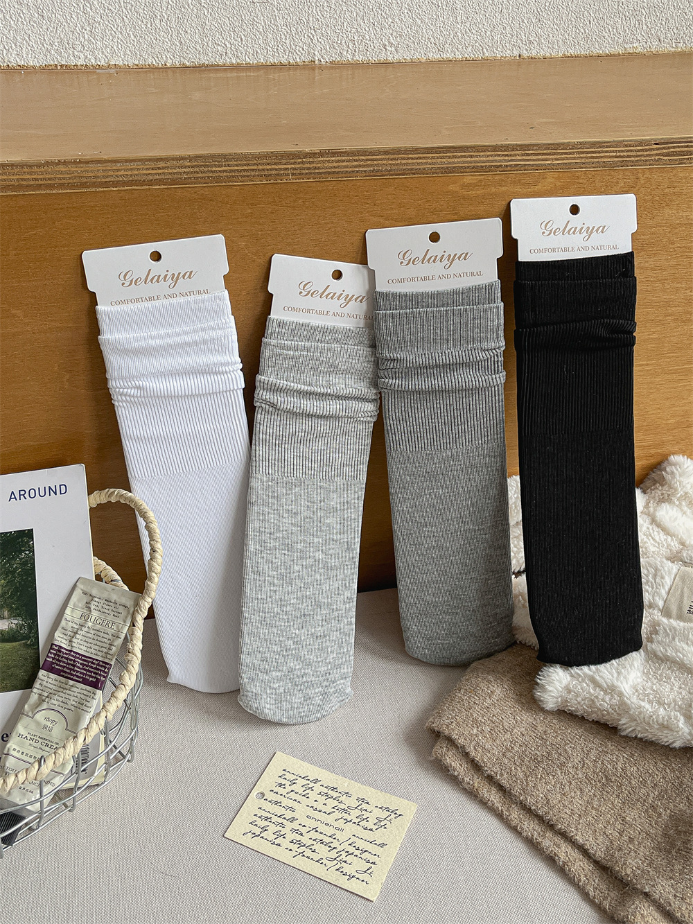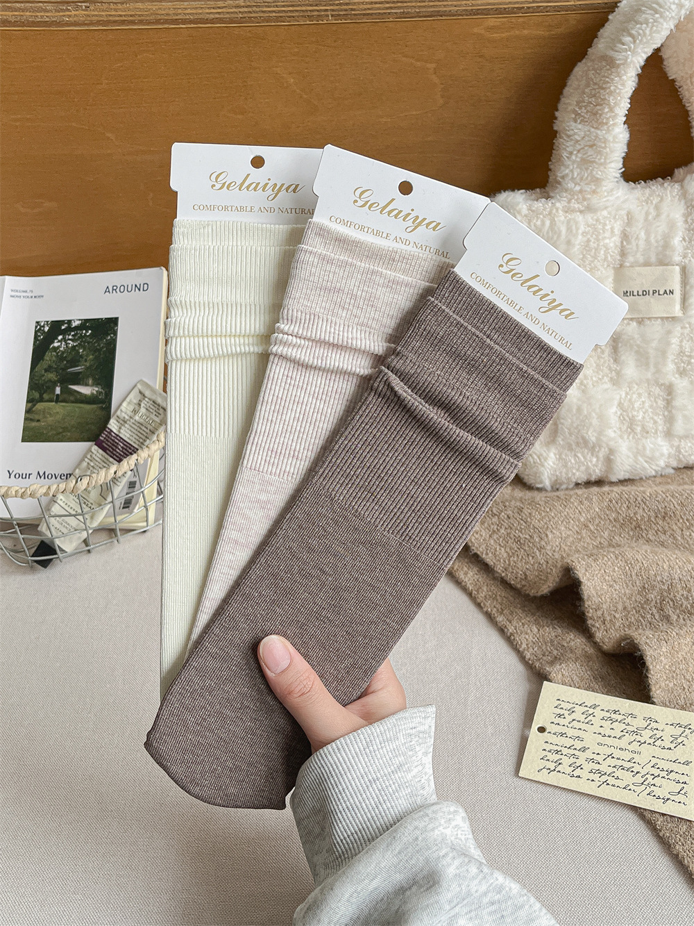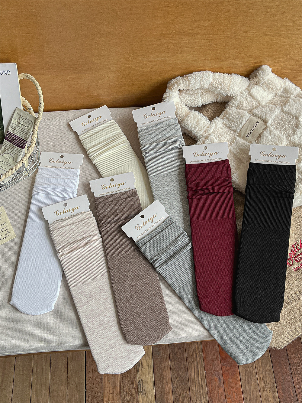 Gleya 1809 가을과 겨울 두꺼운 따뜻한 양모 긴 튜브 스타킹 단색 여성 튜브 양말면 양말스토어 가기