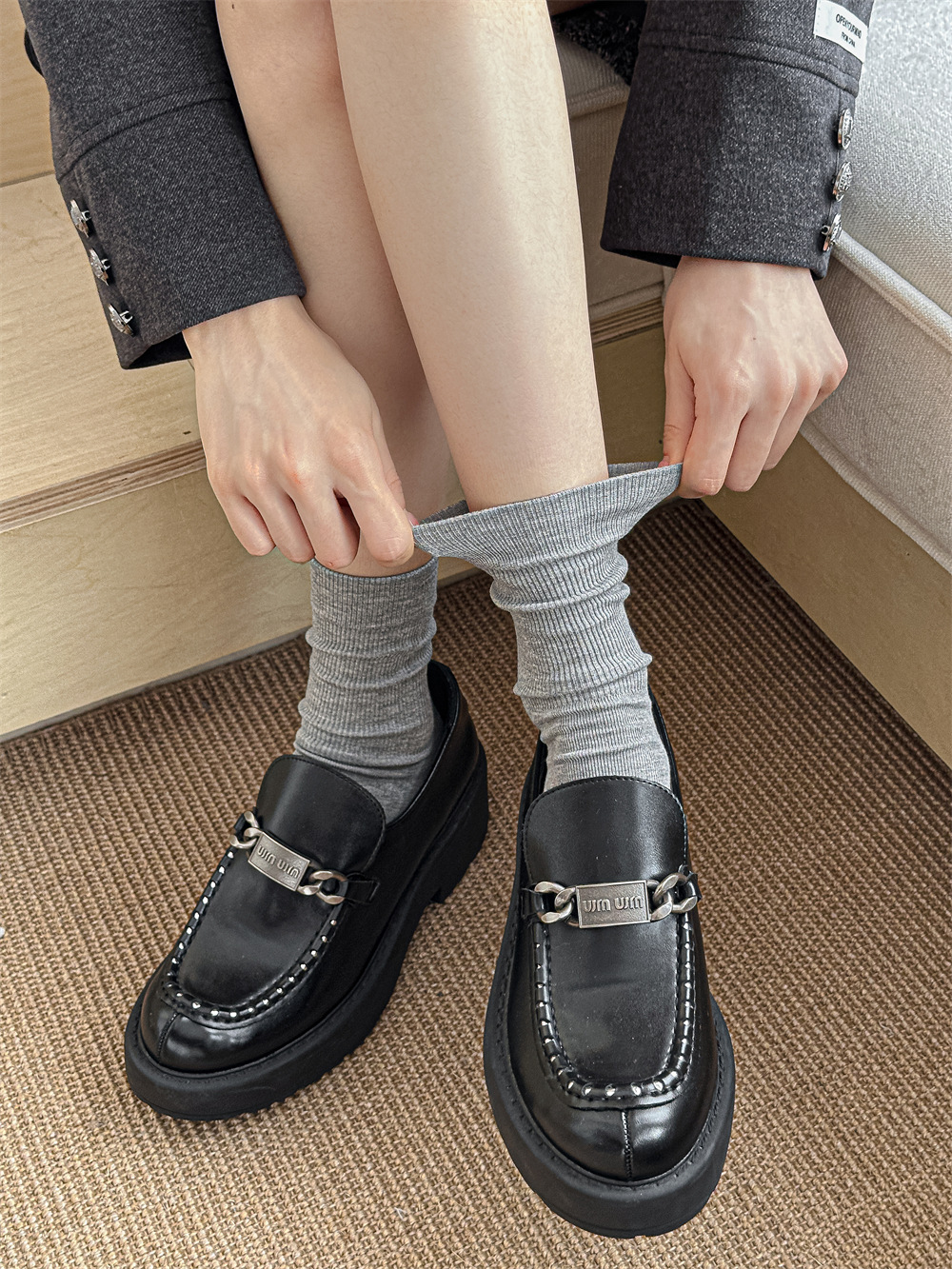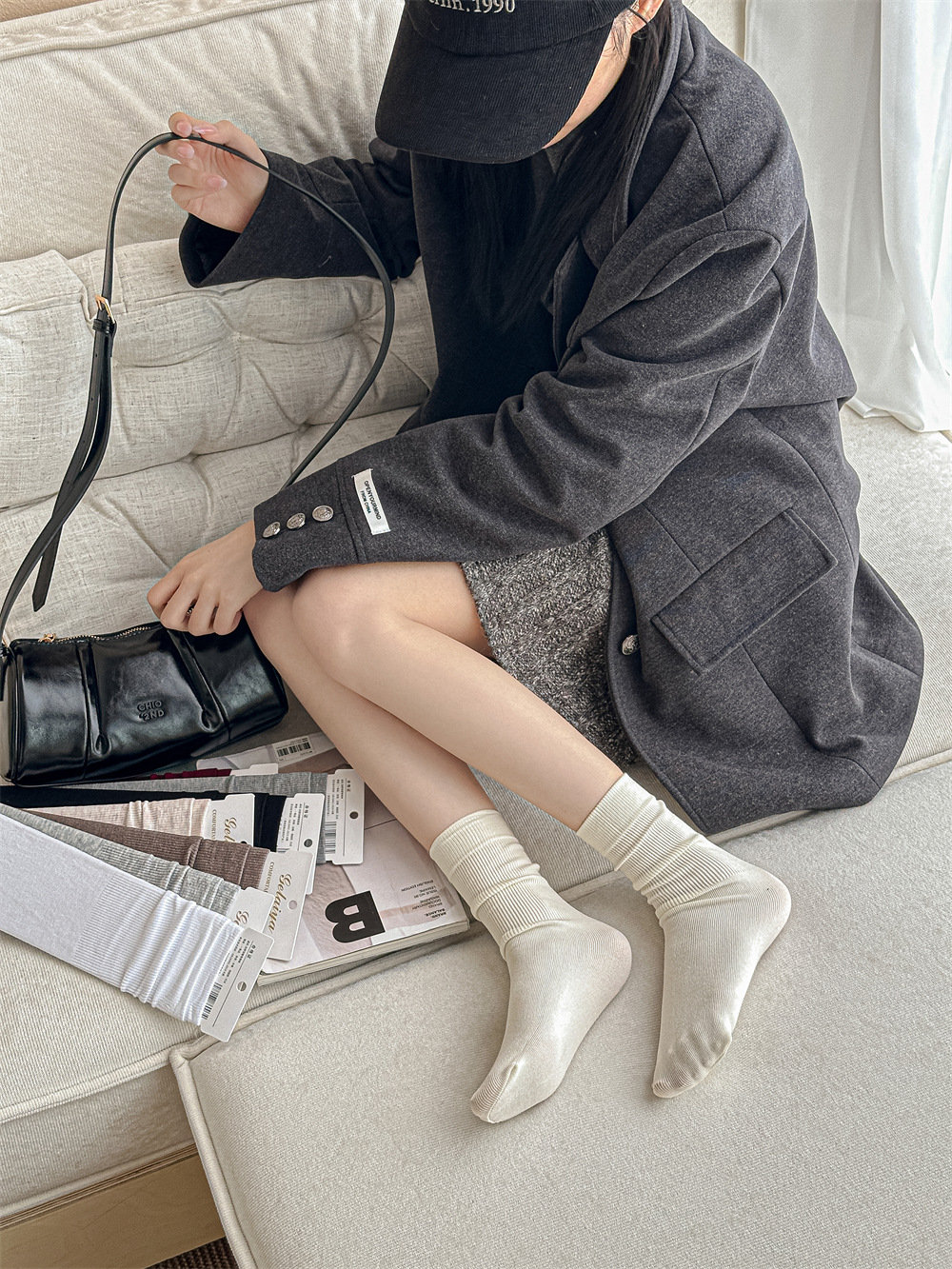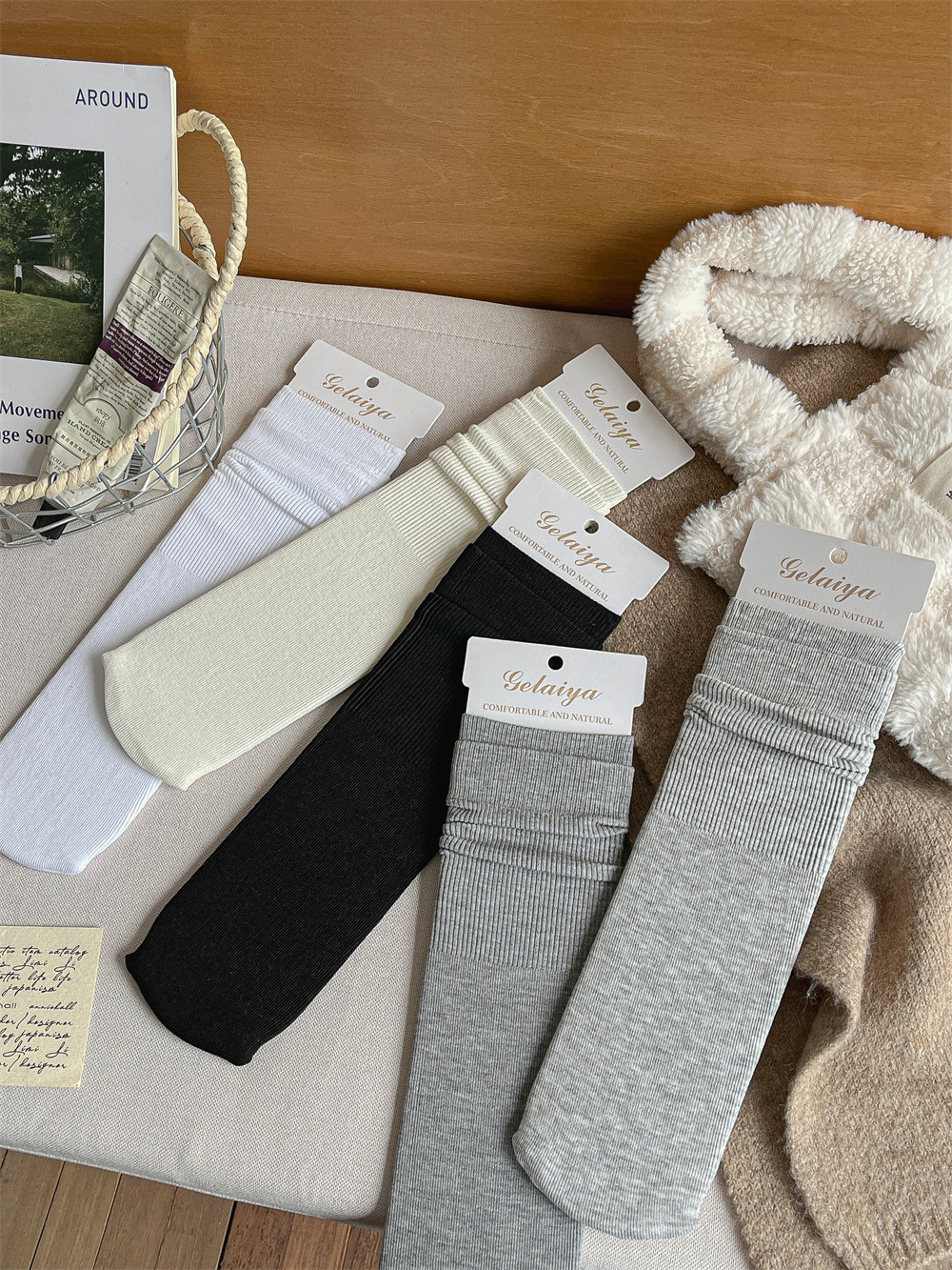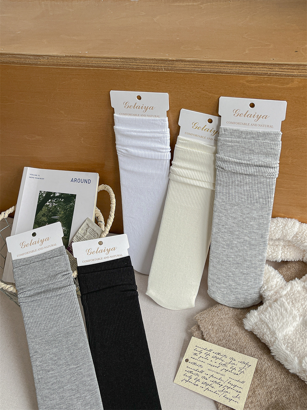 Gleya 1809 가을과 겨울 두꺼운 따뜻한 양모 긴 튜브 스타킹 단색 여성 튜브 양말면 양말스토어 가기