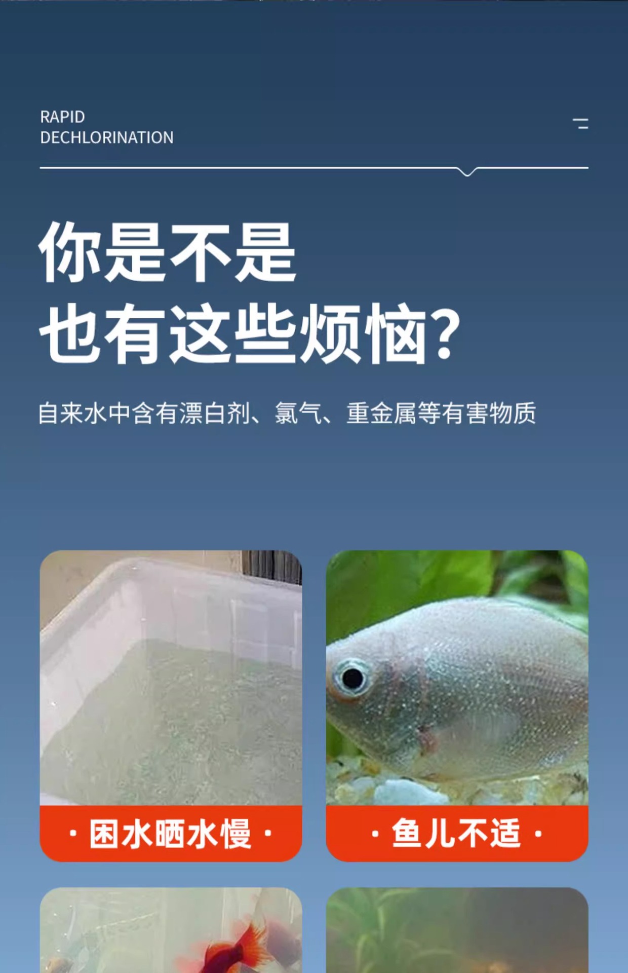 수돗물 염소 제거 물을위한 물고기 탱크 수족관 수질 안정제 안정제 염소 제거 관상용 물고기