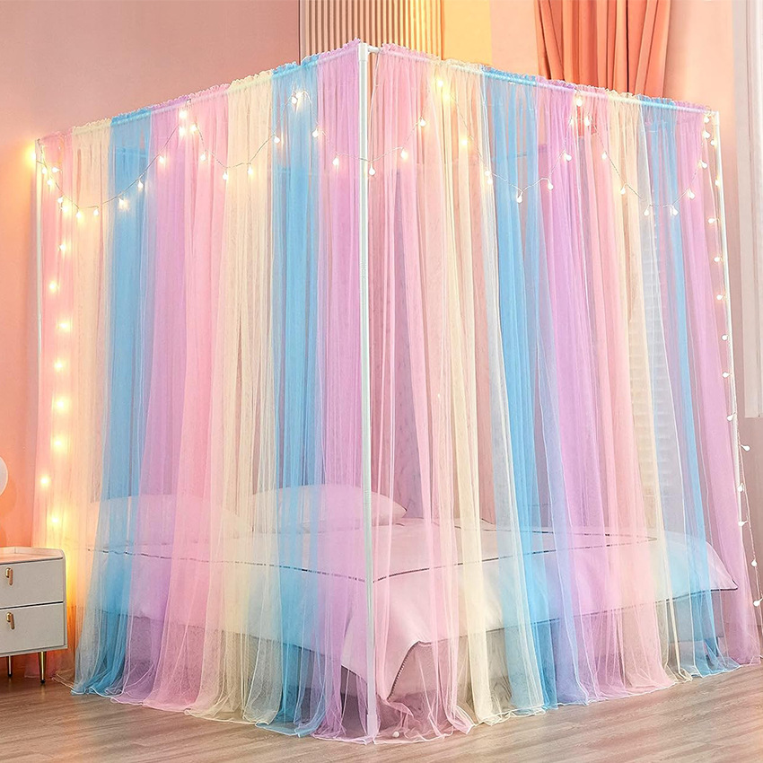 여름 인기 4도어 모기장, 4코너 침대 커튼, 플로어 스탠딩 사각 모기장, 암호화된 모기장, 암호화된 컬러 모기장