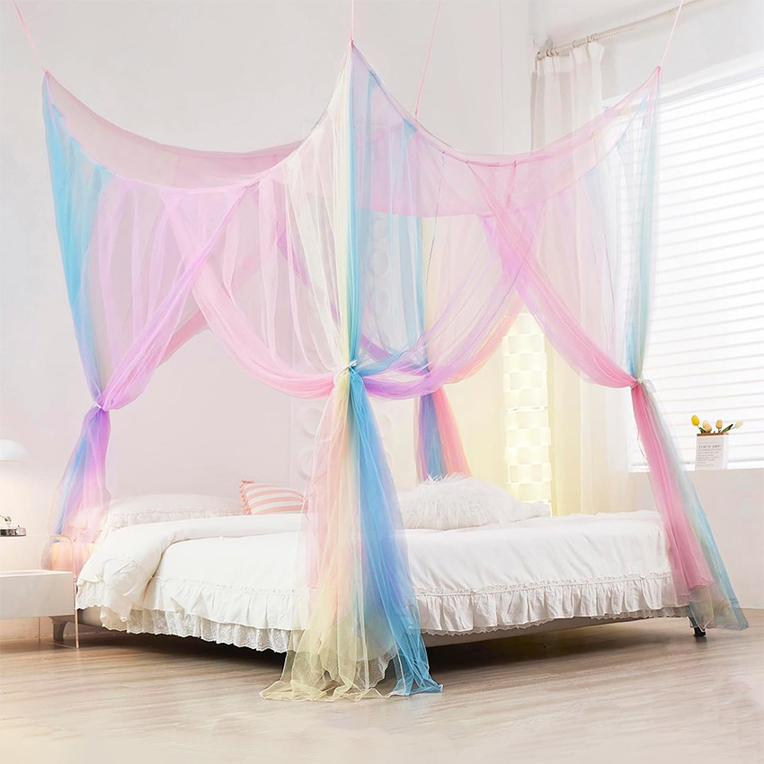 여름 인기 4도어 모기장, 4코너 침대 커튼, 플로어 스탠딩 사각 모기장, 암호화된 모기장, 암호화된 컬러 모기장스토어 가기