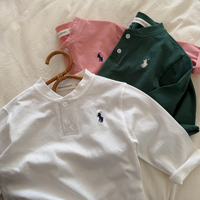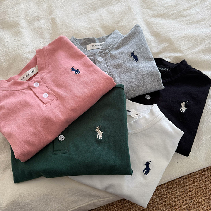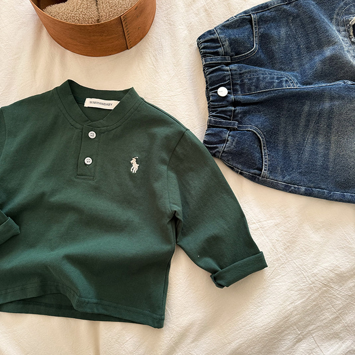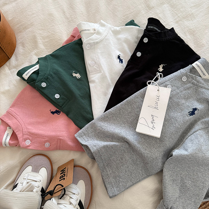 단색 티셔츠 긴 소매 남성 2025 봄 어린이 최고 부드러운 아기 유행 브랜드 기본 셔츠 여성스토어 가기